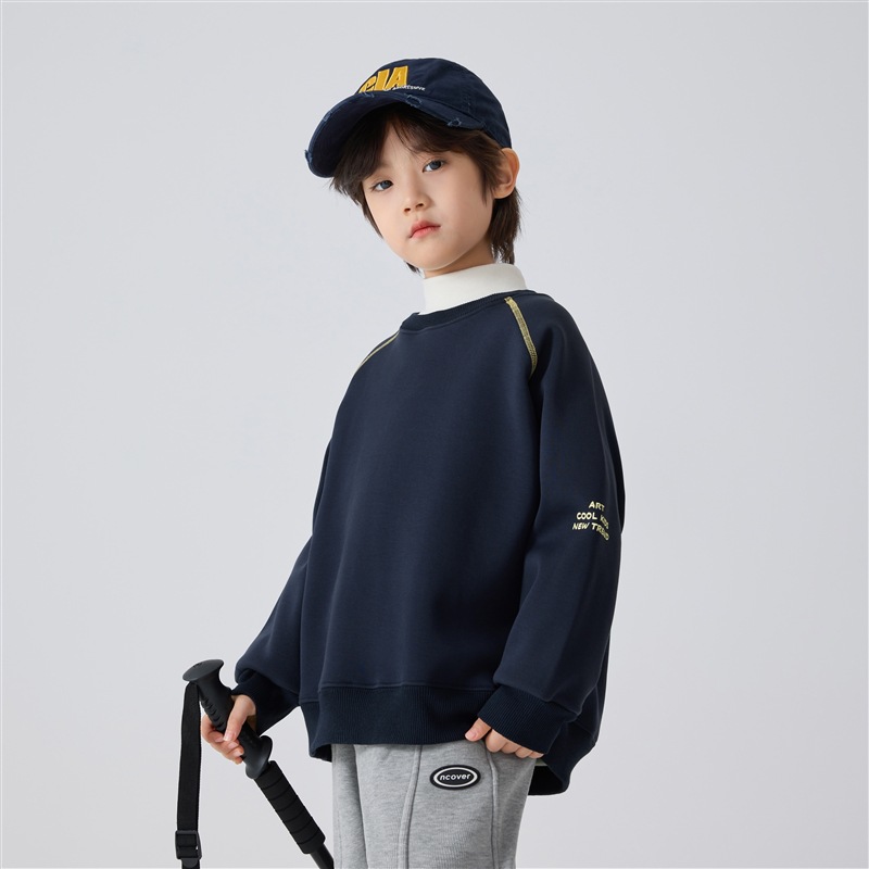 해마가족 아동복 2025년 겨울 신상 남아용 겨울옷 풀오버 스웨트셔츠 기모 안감 두꺼운 라운드넥 의류 한국 스타일 트렌디스토어 가기