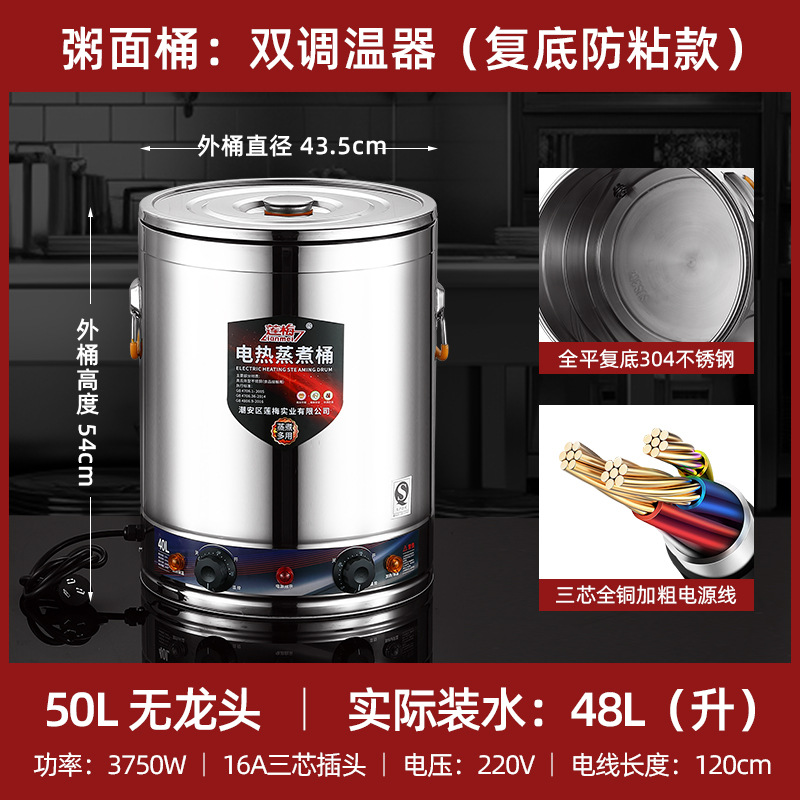 • 60리터 이중 바닥 이중 온도 조절 버전으로 죽을 끓이고 두유를 따뜻하게 유지하는 데 적합합니다. ⚑