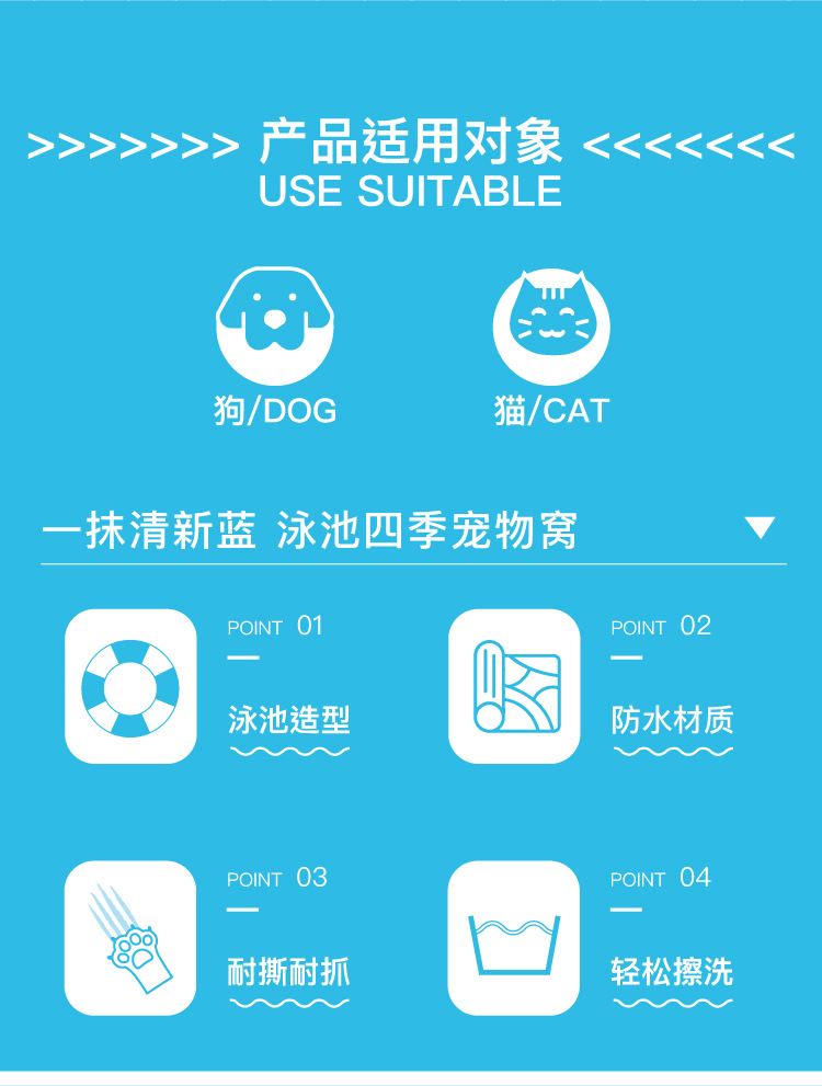 수영장 여름 고양이 개집 시원한 느낌의 원단 이중 소재 긁힘 방지 탈부착 및 세탁 가능 사계절 사용 가능