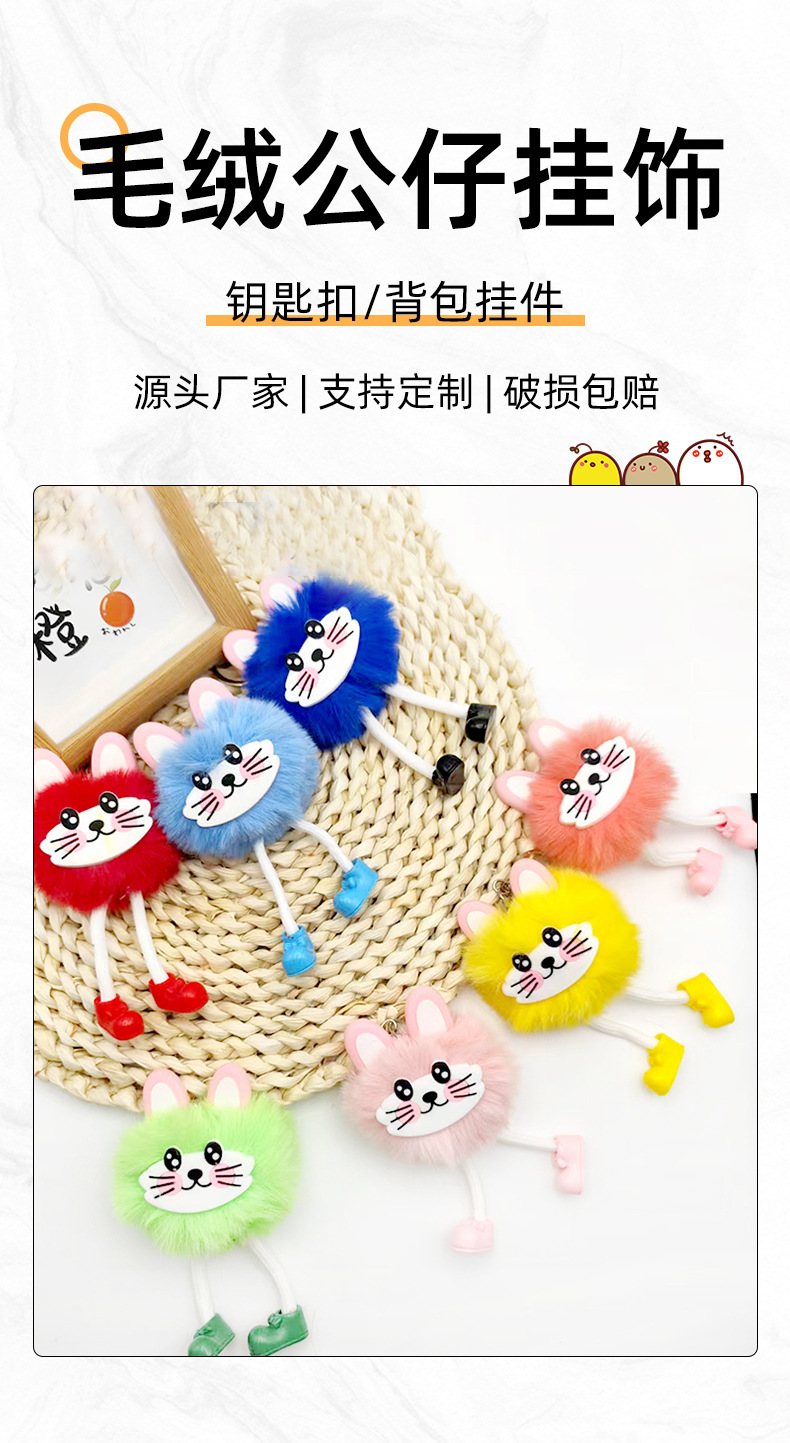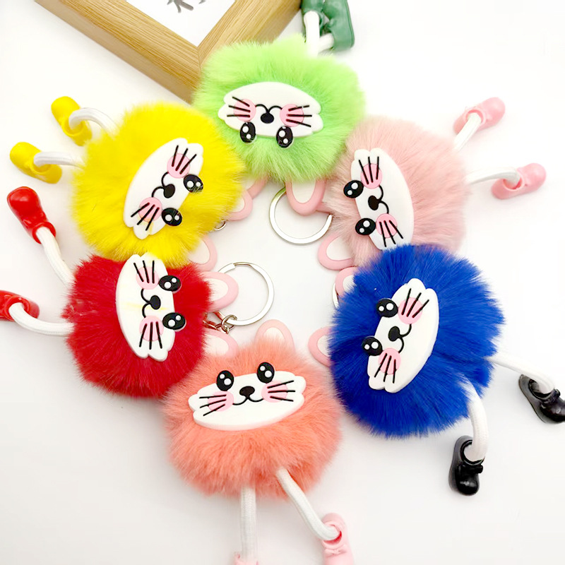귀여운 고양이 긴 다리 펜던트 만화 플러시 키 체인 절묘한 모피 공 자동차 열쇠 고리 펜던트 선물 남자스토어 가기