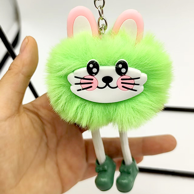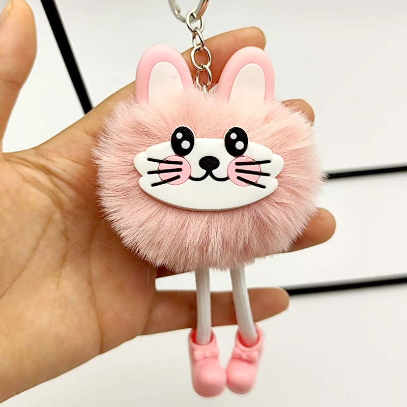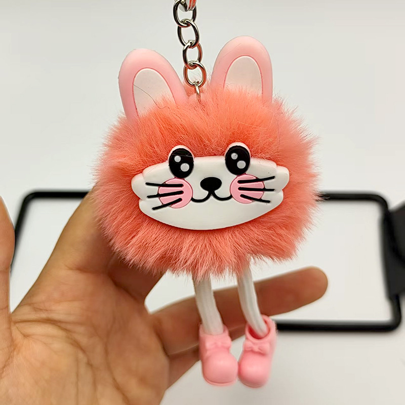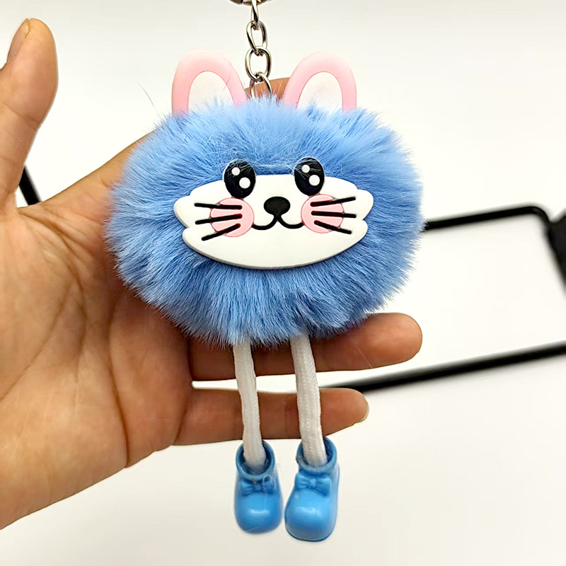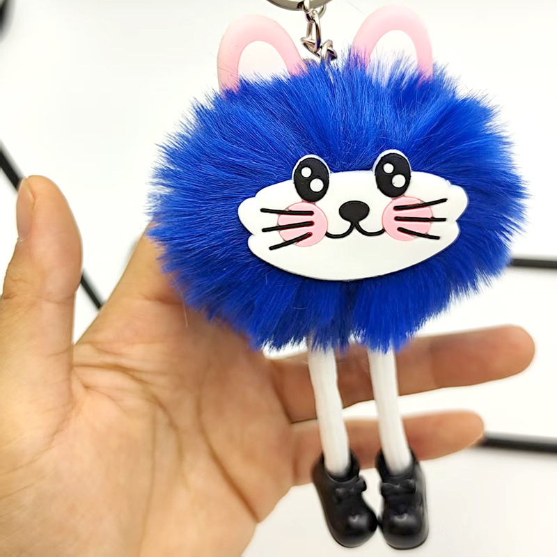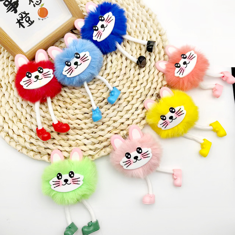 귀여운 고양이 긴 다리 펜던트 만화 플러시 키 체인 절묘한 모피 공 자동차 열쇠 고리 펜던트 선물 남자