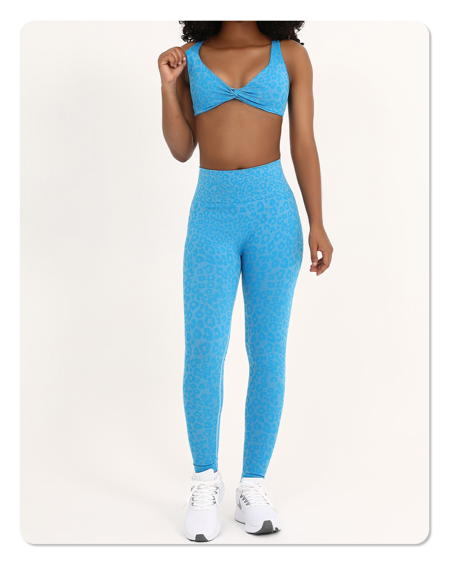GYM Shark 같은 스타일 요가 세트 AliExpress 뜨거운 판매 스포츠 피트니스 요가 의류 레오파드 자카드 원활한 세트스토어 가기