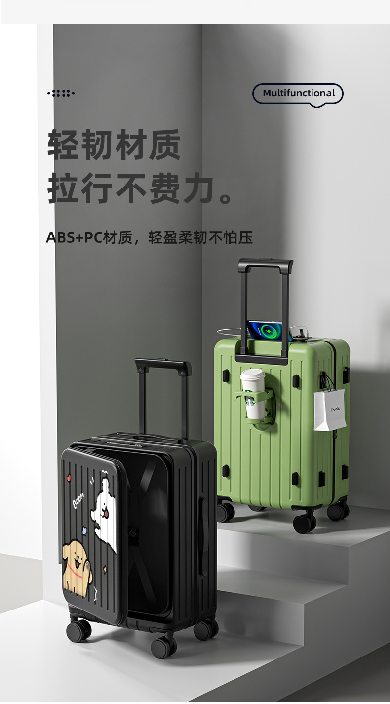 다기능 여행가방, 고급스럽고 내구성이 뛰어난 여행가방, 20인치 범용 휠, 경량 수하물 도매 측면 개방형 비밀번호 상자스토어 가기