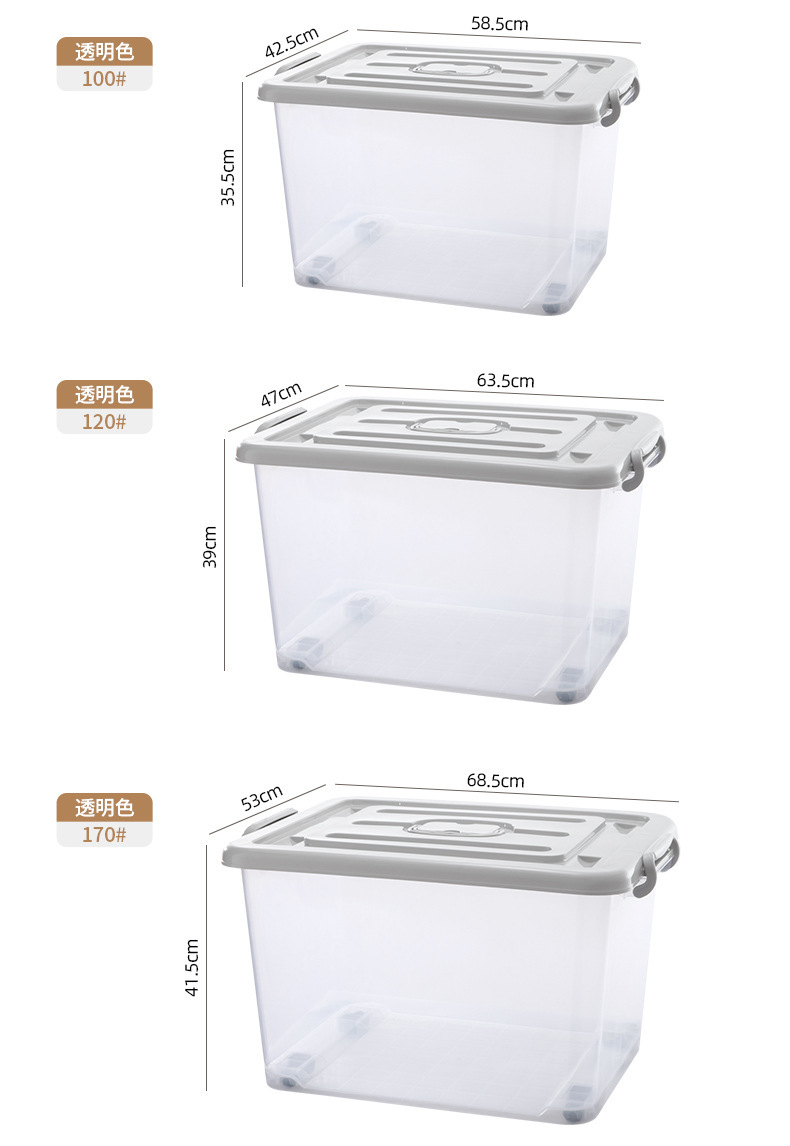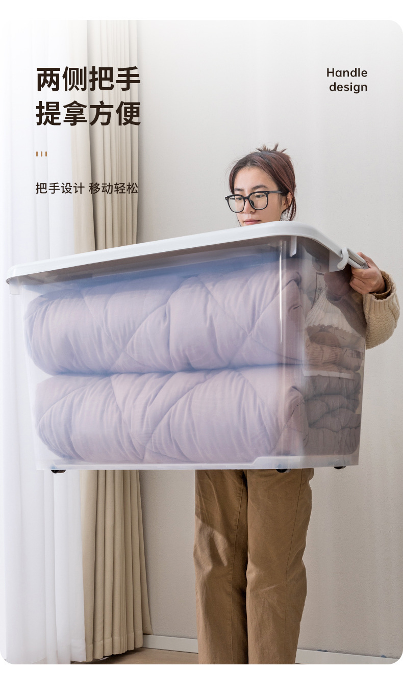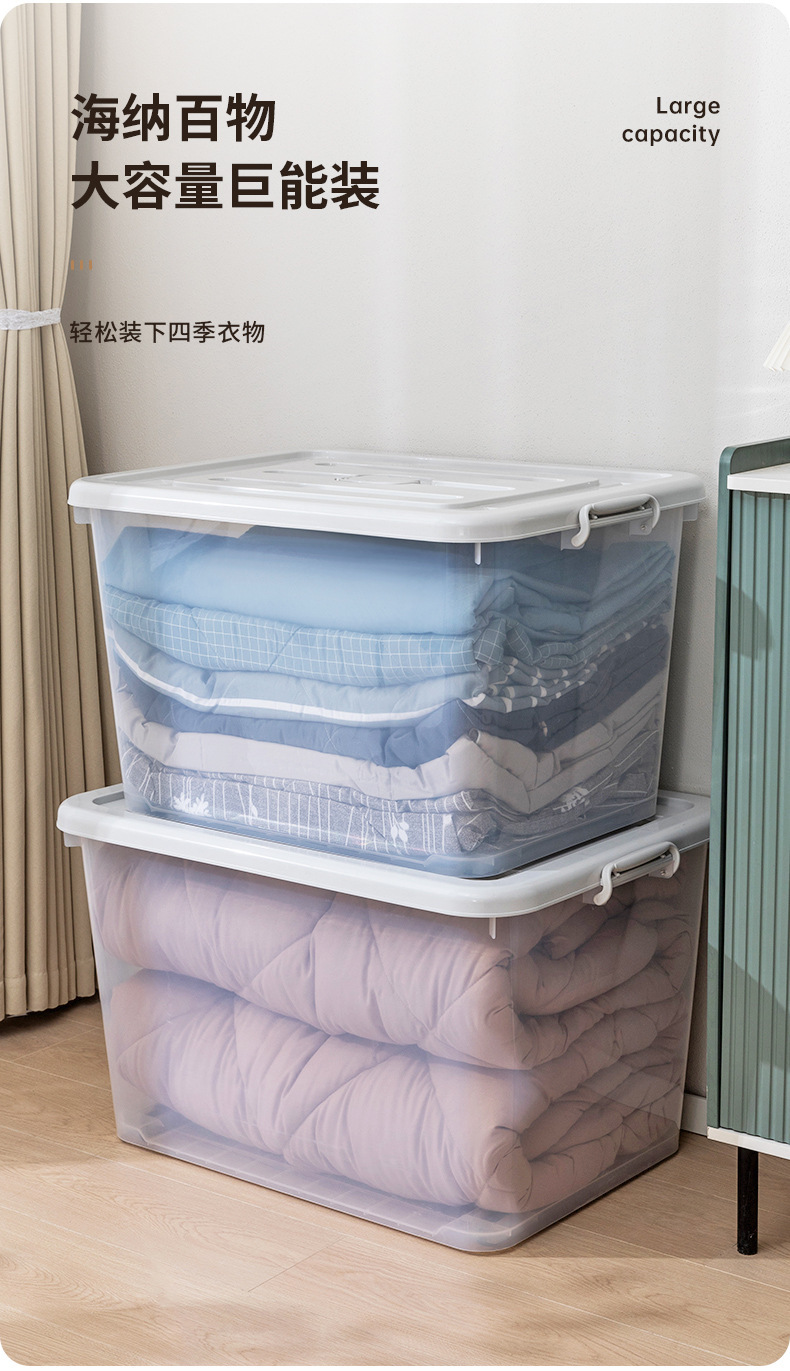옷과 이불을 위한 대형 투명 플라스틱 보관 상자, 슬라이딩 휠이 있는 이동용 보관 상자, 장난감 보관 상자스토어 가기