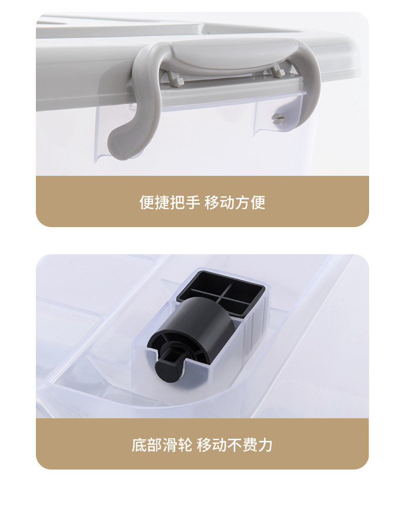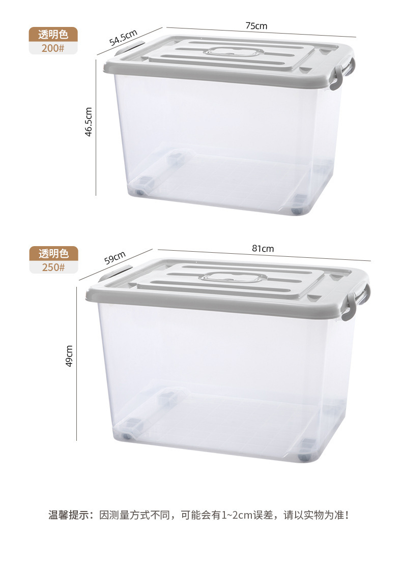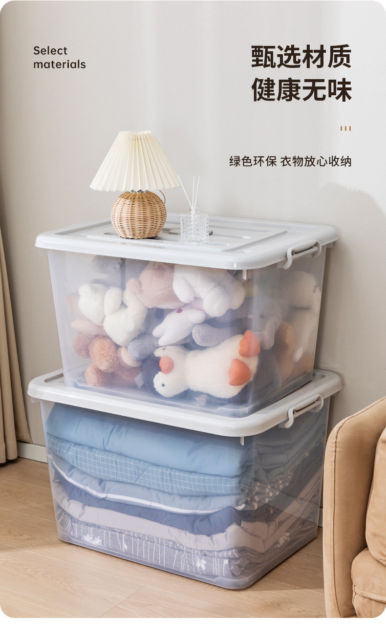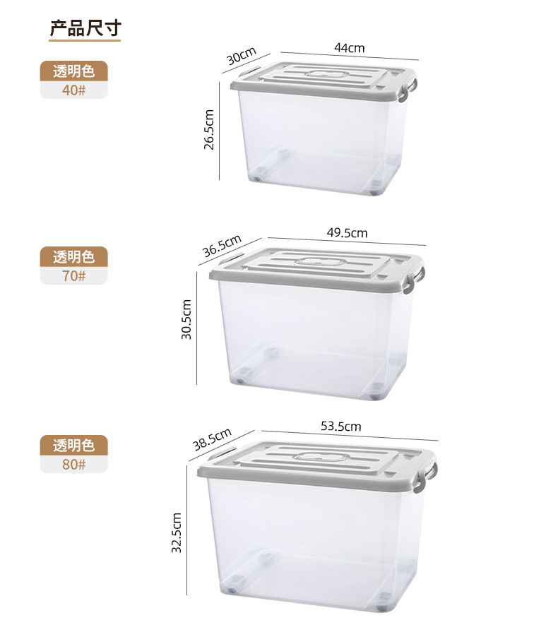 옷과 이불을 위한 대형 투명 플라스틱 보관 상자, 슬라이딩 휠이 있는 이동용 보관 상자, 장난감 보관 상자스토어 가기