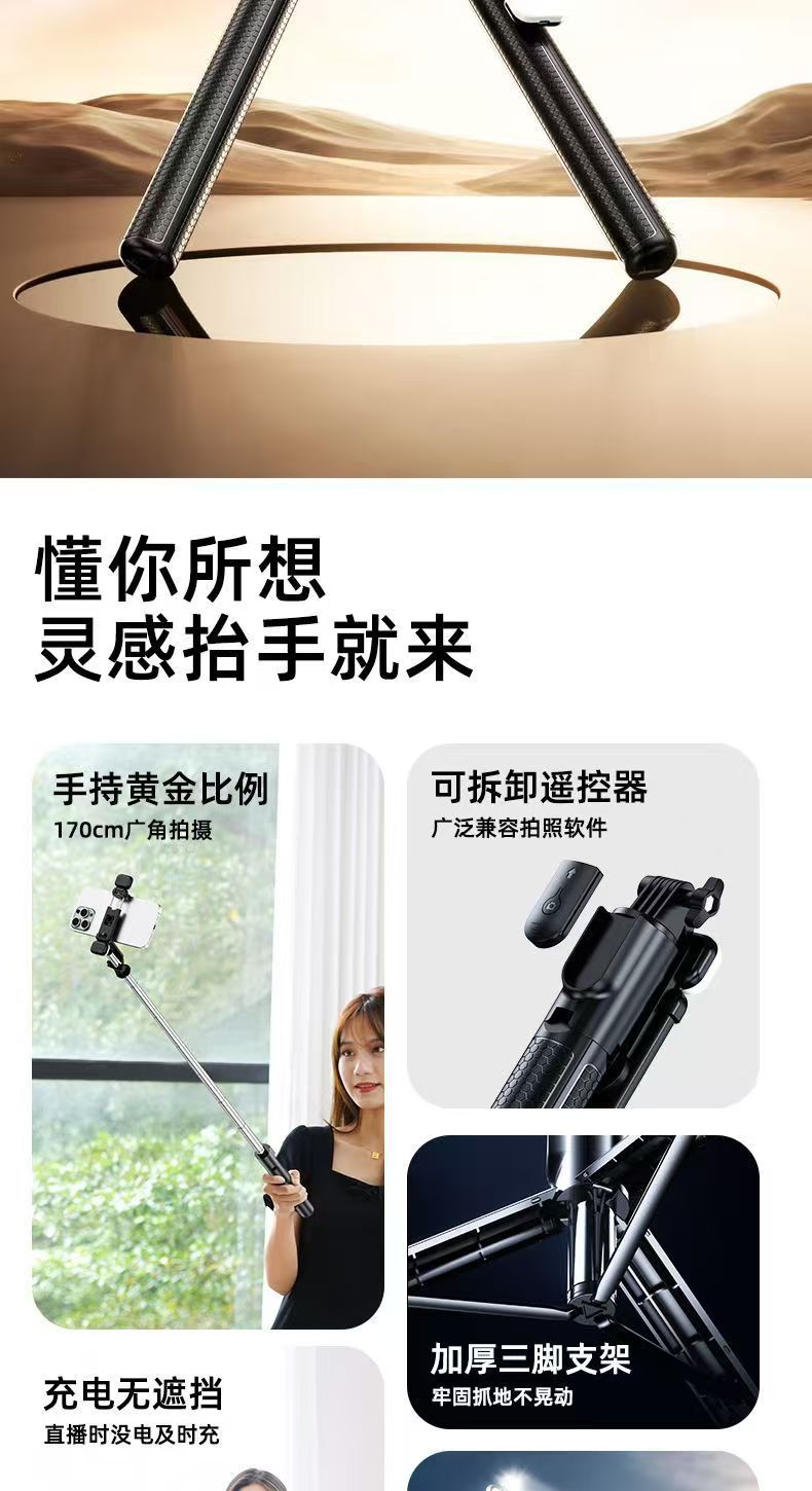 휴대폰 블루투스 셀카봉 1.7m 접이식 삼각대 여행 라이브 방송 사진 촬영 일체형 휴대폰 거치대