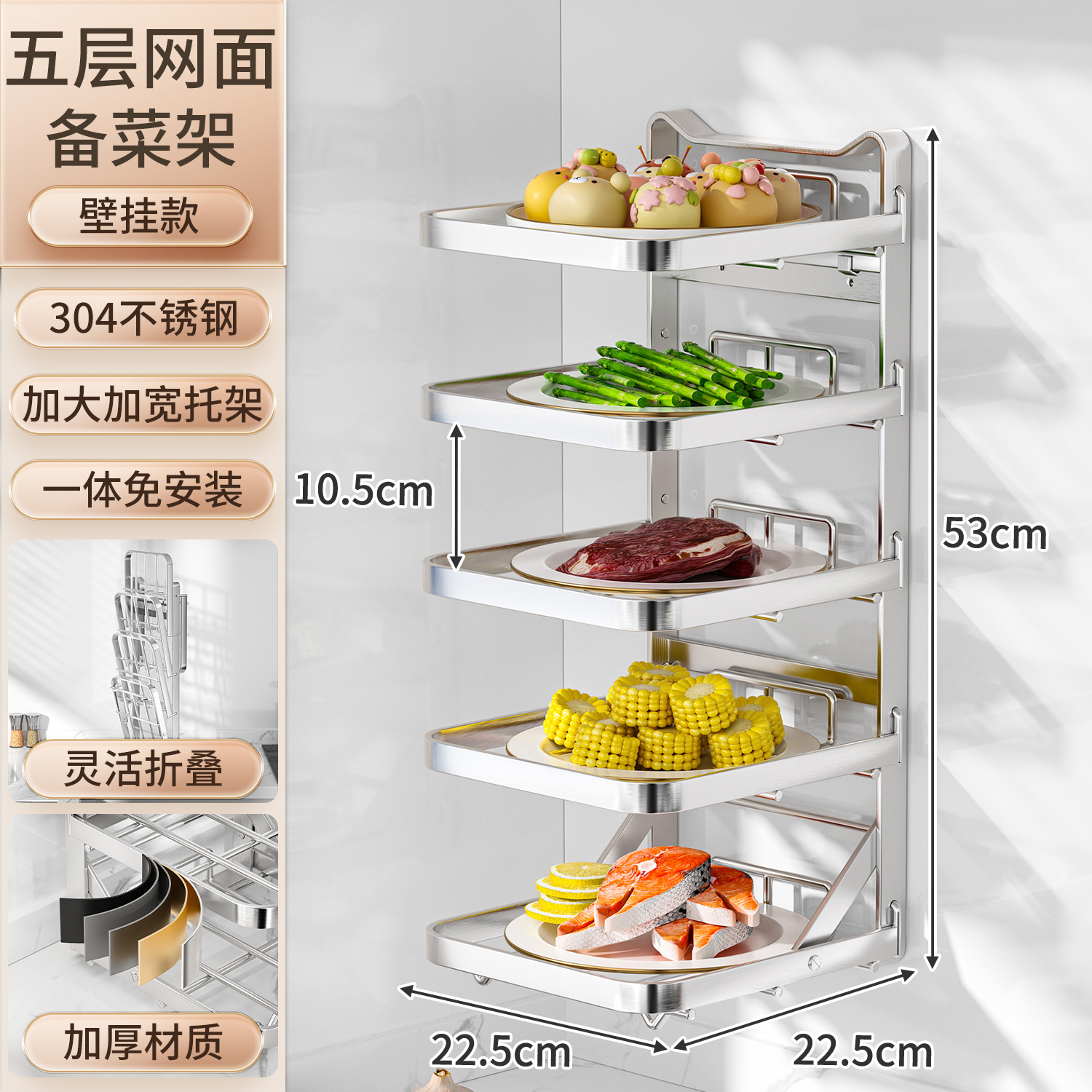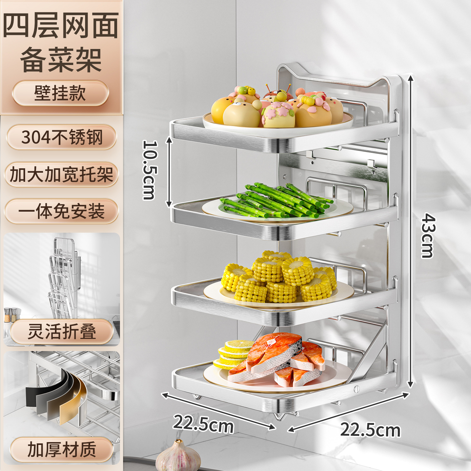 도매용 접이식 무설치 주방 조리대 수납 선반 스테인리스 식재료 준비대 벽걸이형 조리대 수납 선반