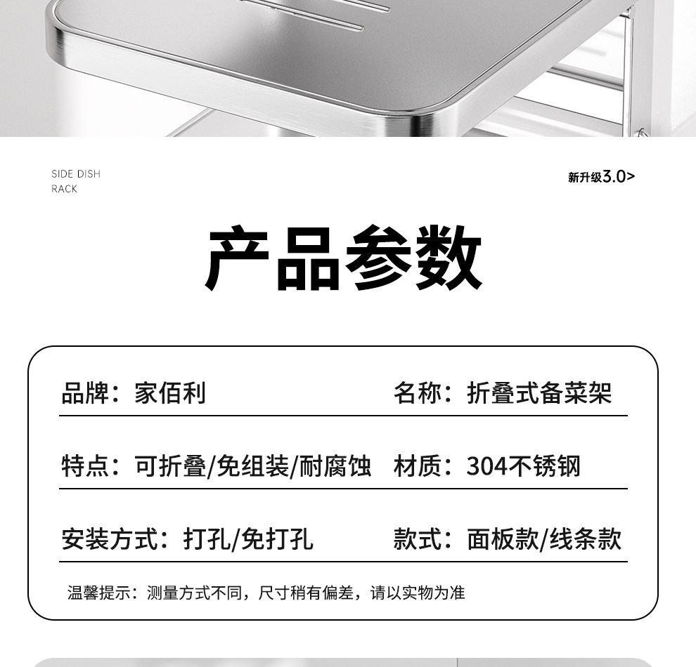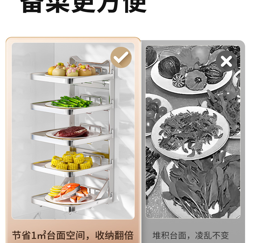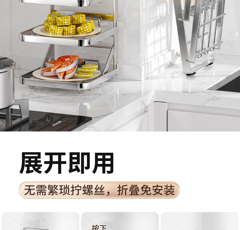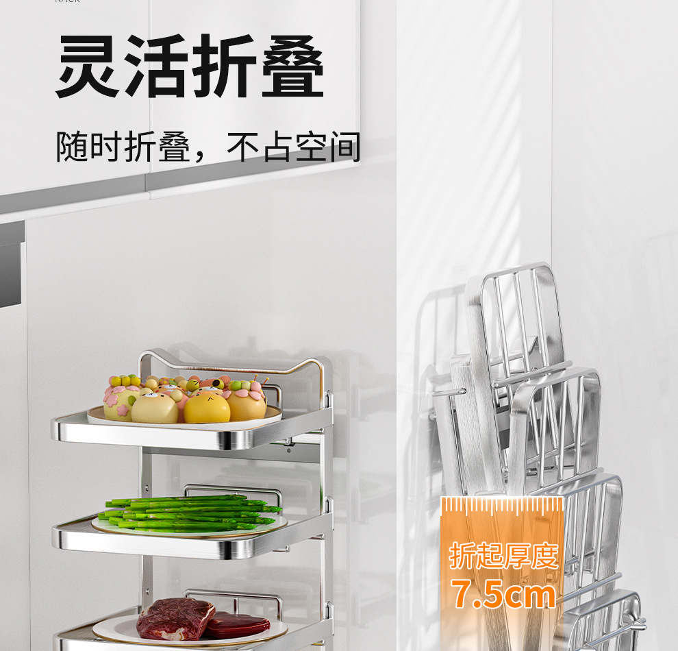 도매용 접이식 무설치 주방 조리대 수납 선반 스테인리스 식재료 준비대 벽걸이형 조리대 수납 선반스토어 가기