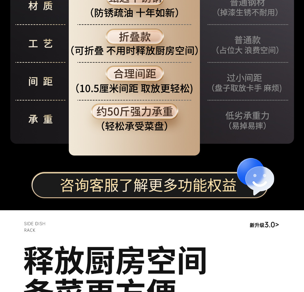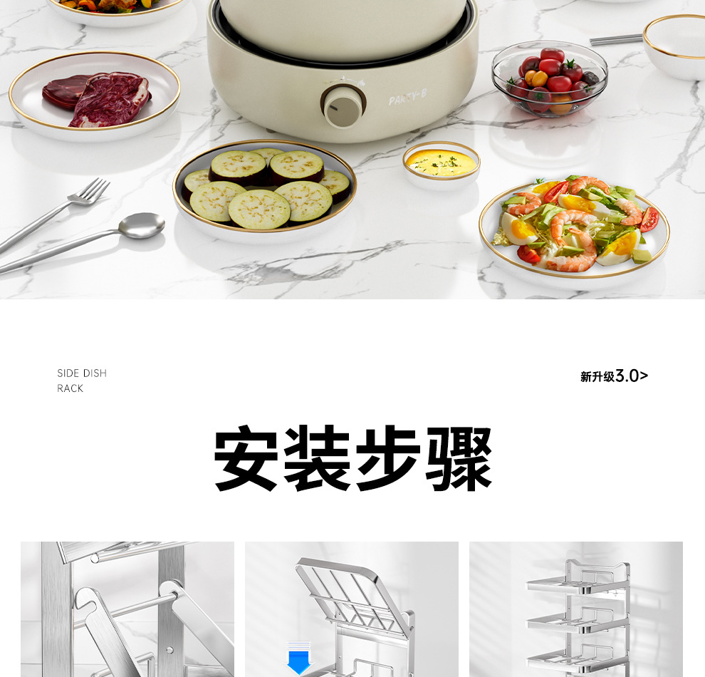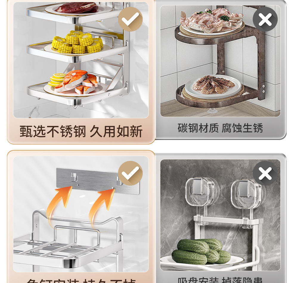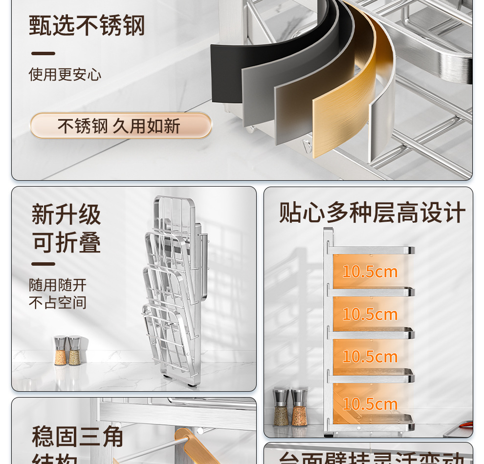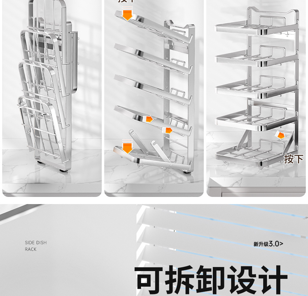 도매용 접이식 무설치 주방 조리대 수납 선반 스테인리스 식재료 준비대 벽걸이형 조리대 수납 선반스토어 가기
