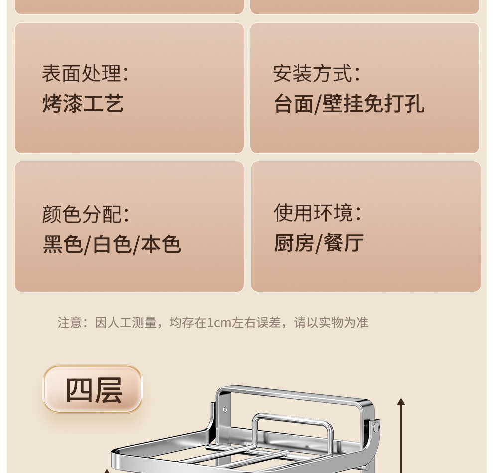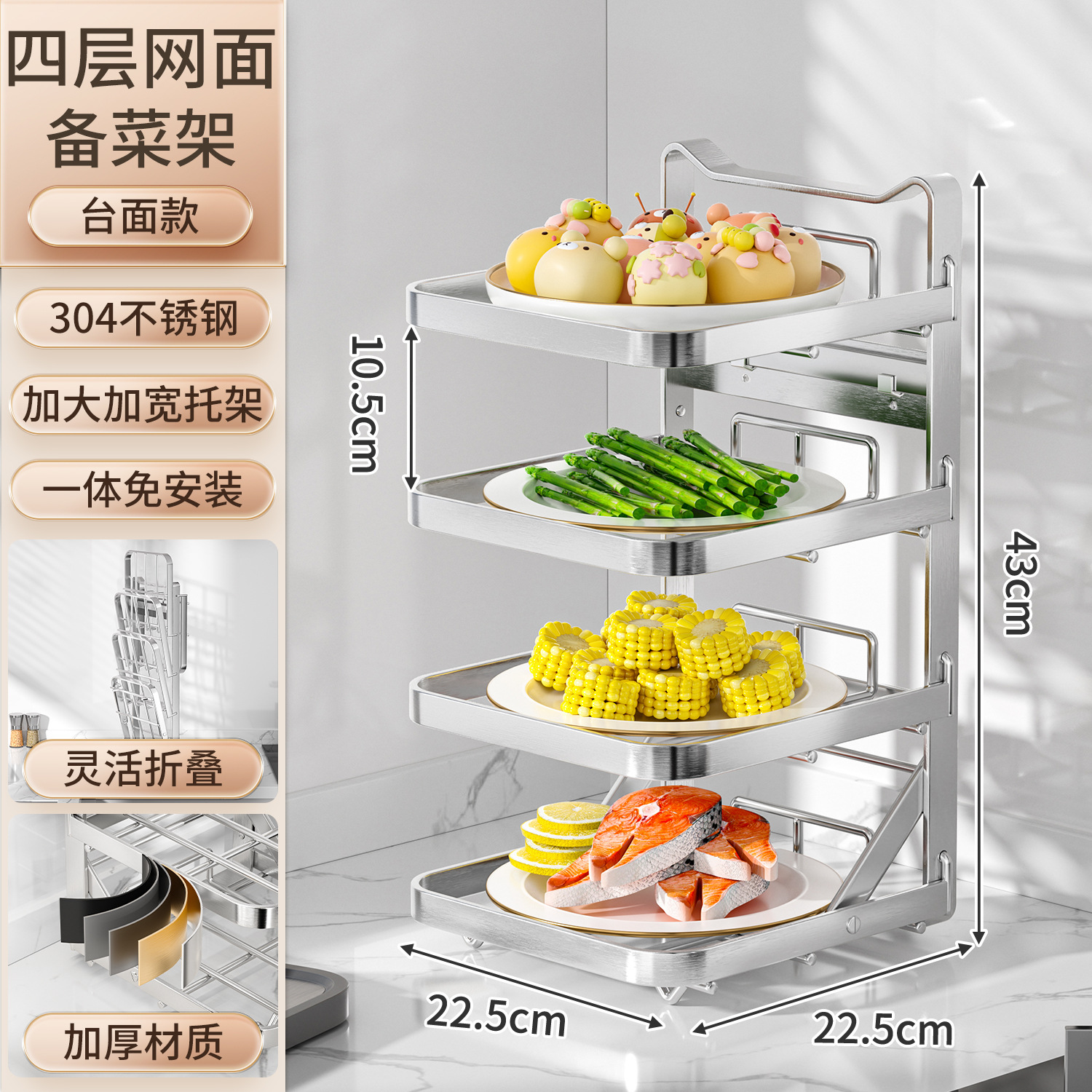 • 스테인리스 스틸 고양이 귀 모양 4단 선반 - 탁상형