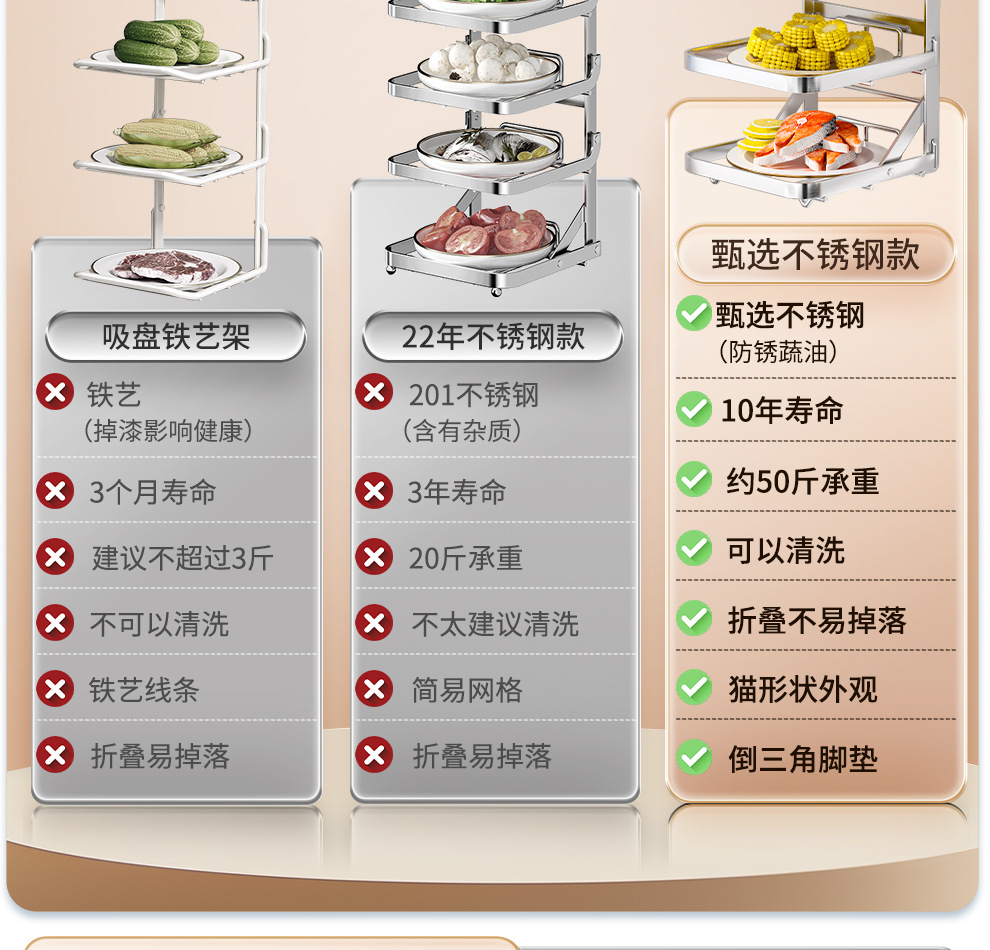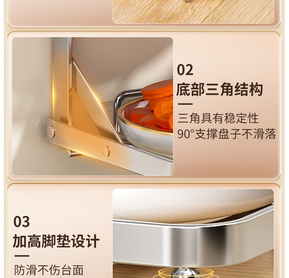 • 스테인리스 스틸 고양이 귀 모양 3단 선반 - 탁상형