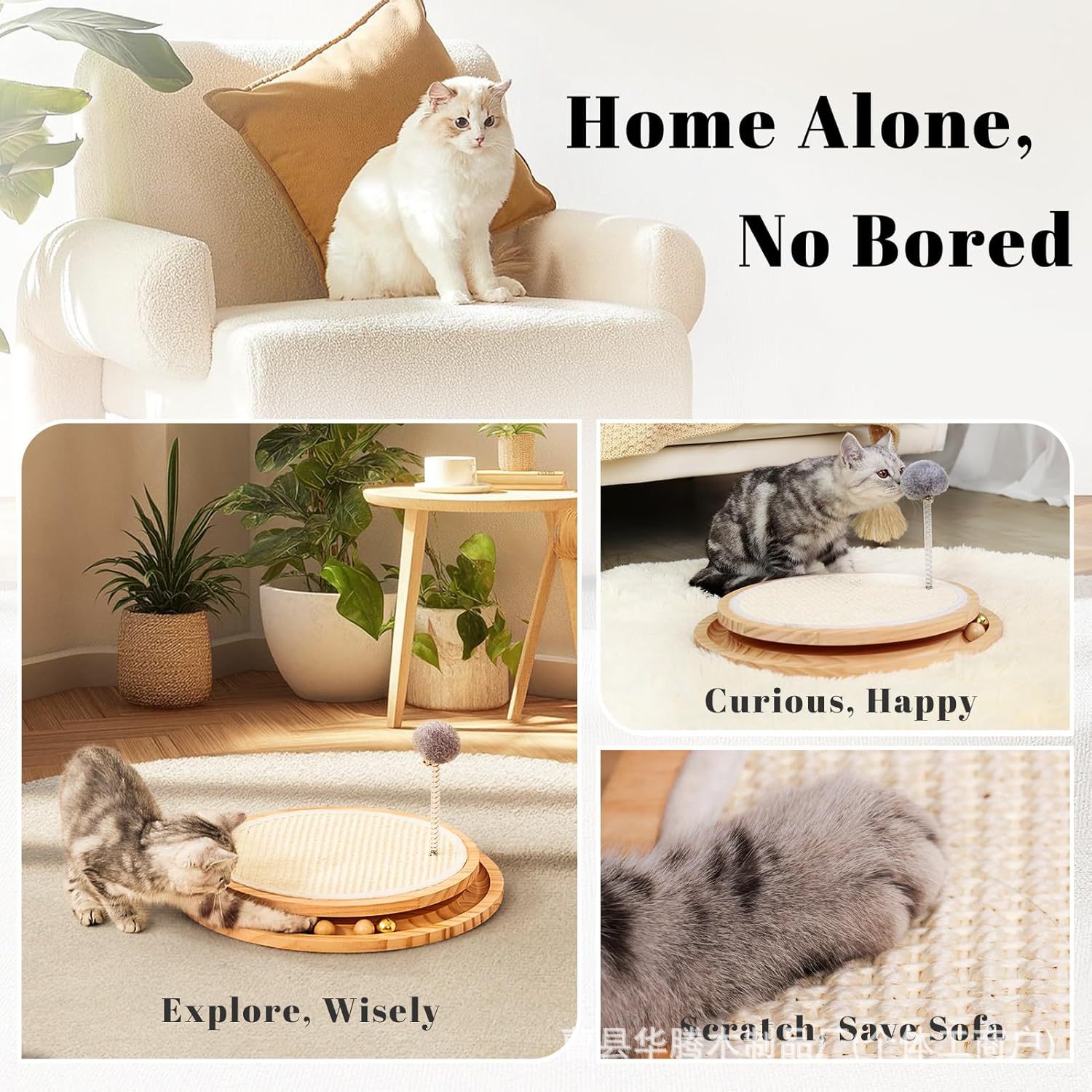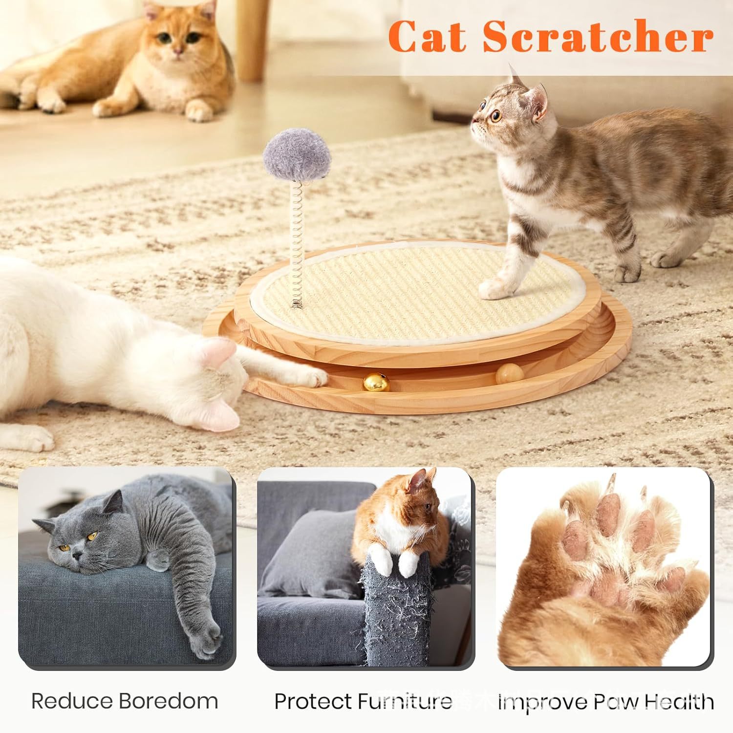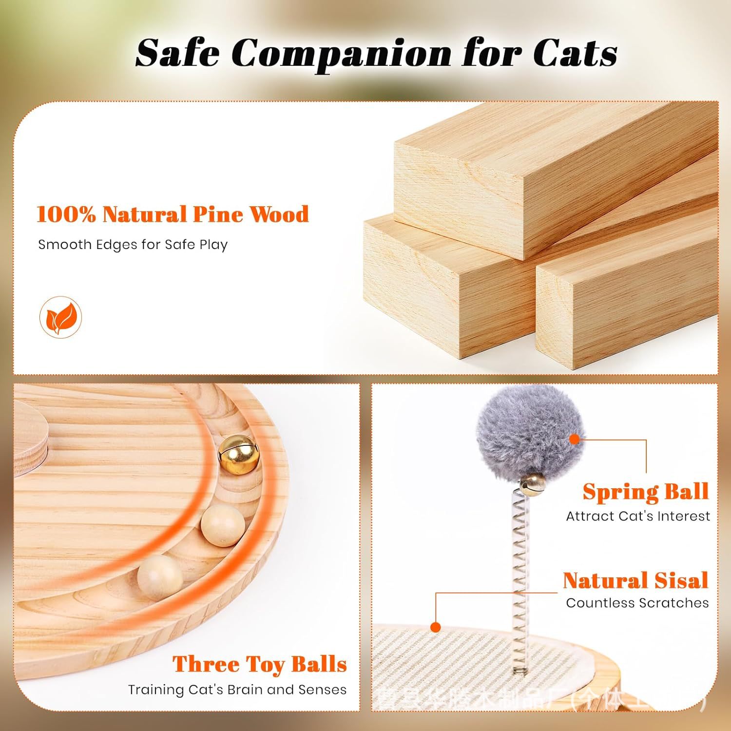 나무 애완 동물 고양이 대화 형 장난감 턴테이블 소나무 매트 스크래치 트랙 볼 벨 고양이 클라이밍 프레임 고양이 스크래치 보드