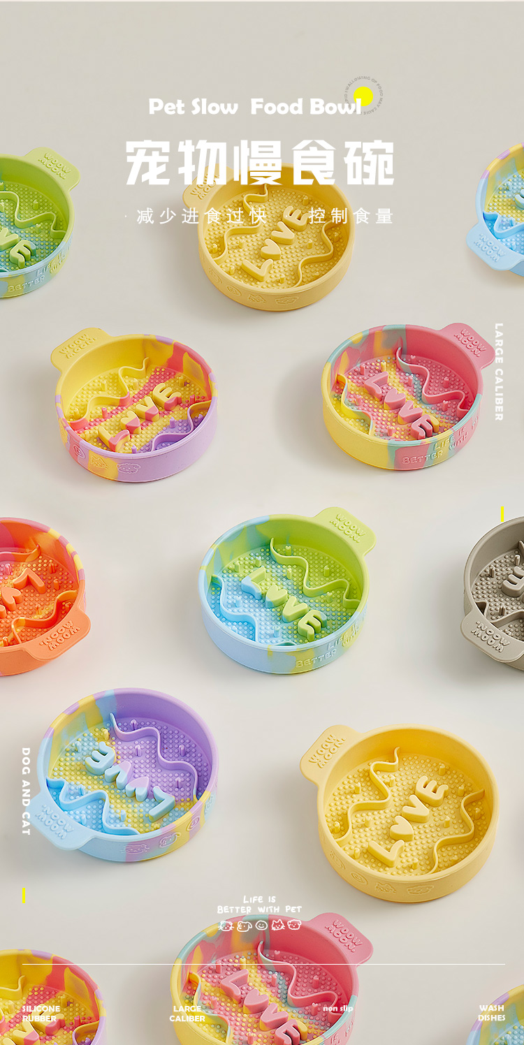 WOOW 슬로우 푸드 그릇 중소형견용, 질식 방지, 넘어짐 방지, 슬로우 푸드 애완견, 강아지 및 고양이용 실리콘 사료 그릇 및 물그릇