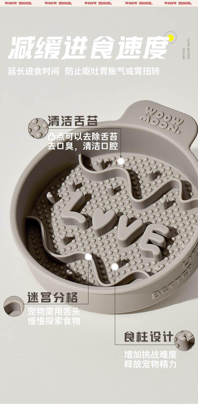 WOOW 슬로우 푸드 그릇 중소형견용, 질식 방지, 넘어짐 방지, 슬로우 푸드 애완견, 강아지 및 고양이용 실리콘 사료 그릇 및 물그릇스토어 가기
