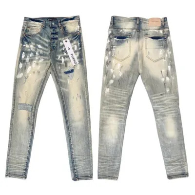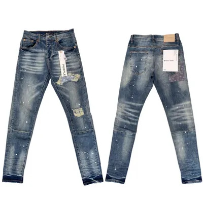 남성용 고품질 찢어진 패치 청바지, 트렌디한 하이 스트리트 스타일, 신축성 있는 슬림핏 바지스토어 가기