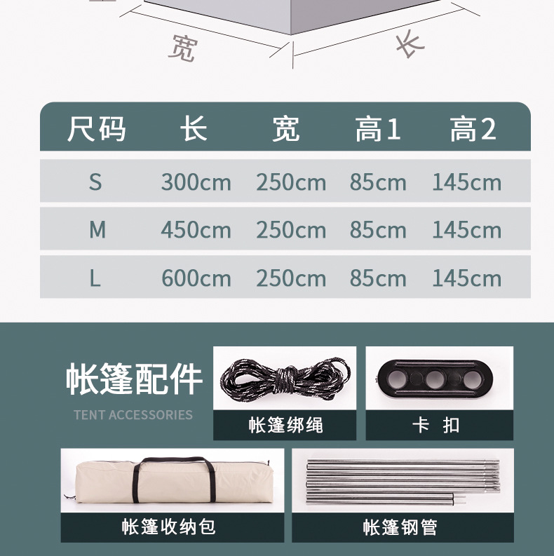 • 6* 3m 비닐 캐노피+6* 2.5m 거즈 텐트
