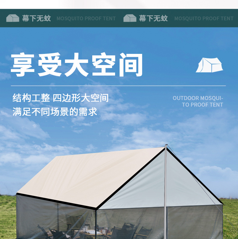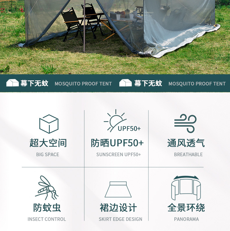 [공장] 야외 캠핑 캐노피 모기 방지, 비 방지, 자외선 차단제, 가족 메쉬 텐트, 피크닉 천막