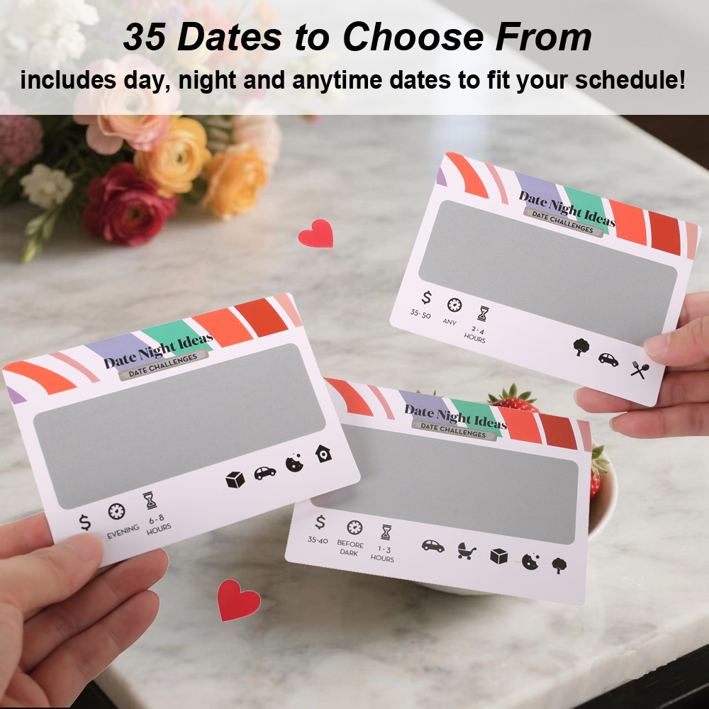 • NEW & IMPROVED VERSION: Included are 35 fun & exciting date challenges and 2 scratchers for easy scratching. Once you scratch off a card, you have to complete the date challenge no matter what :)! There's no take backs so make sure to look at the useful categories on the cards to help you better understand what kind of date awaits you. Ready to go on fun, adventurous and hilarious dates?