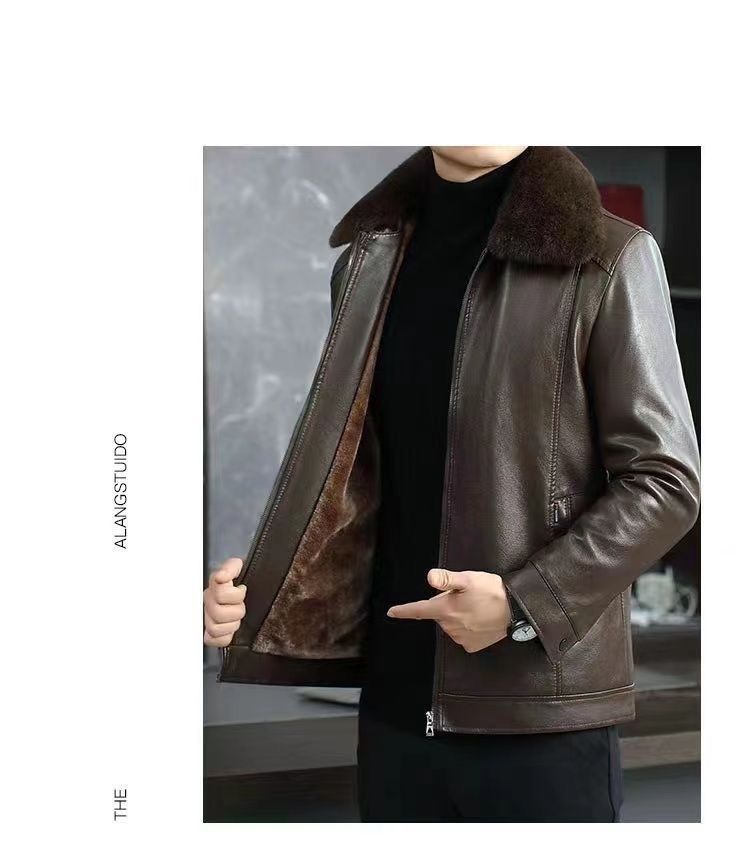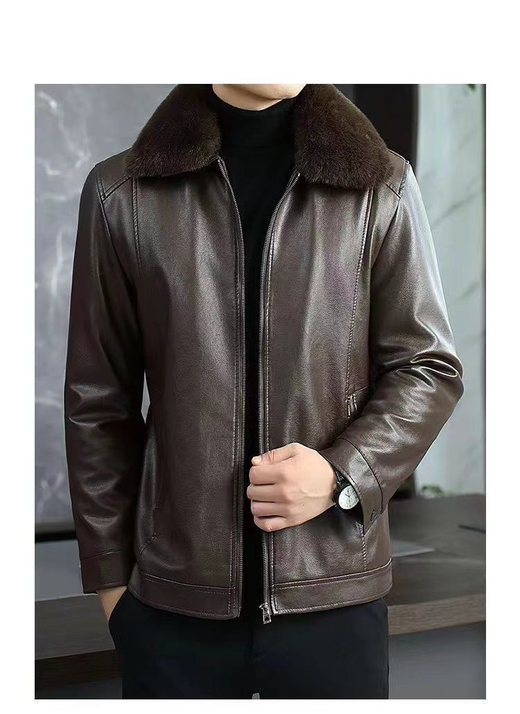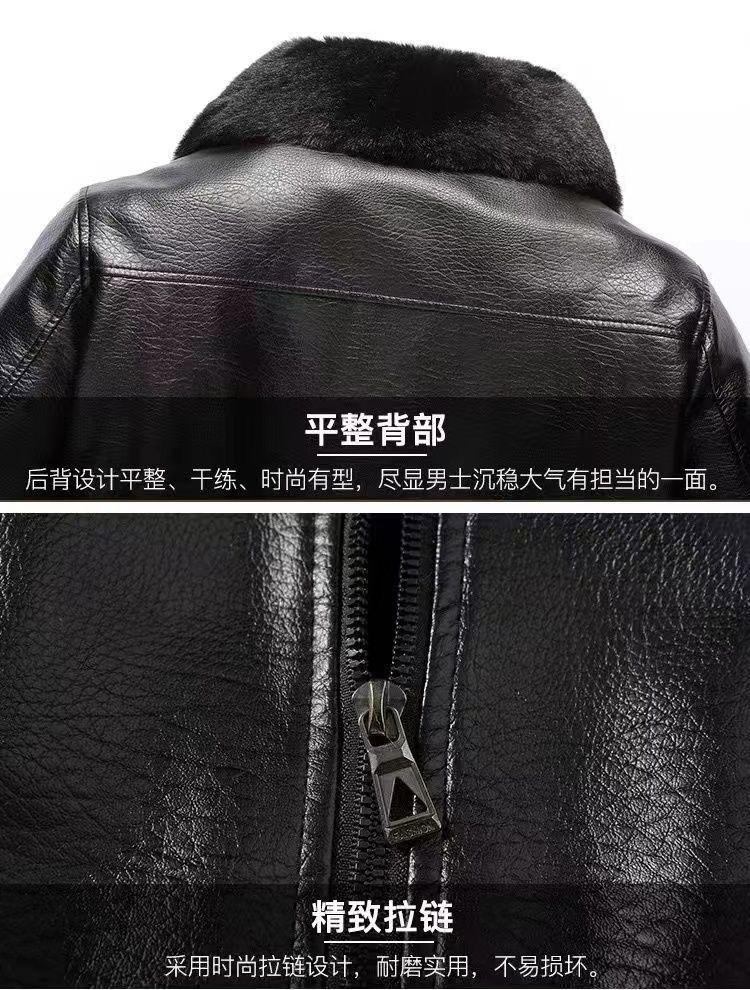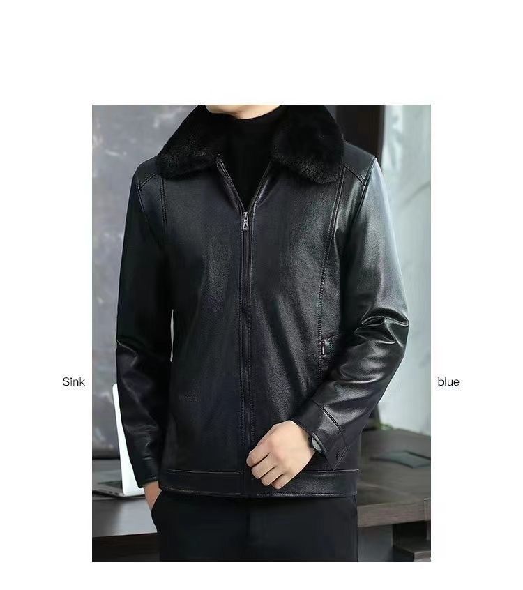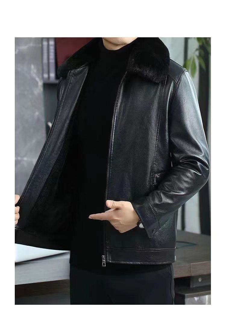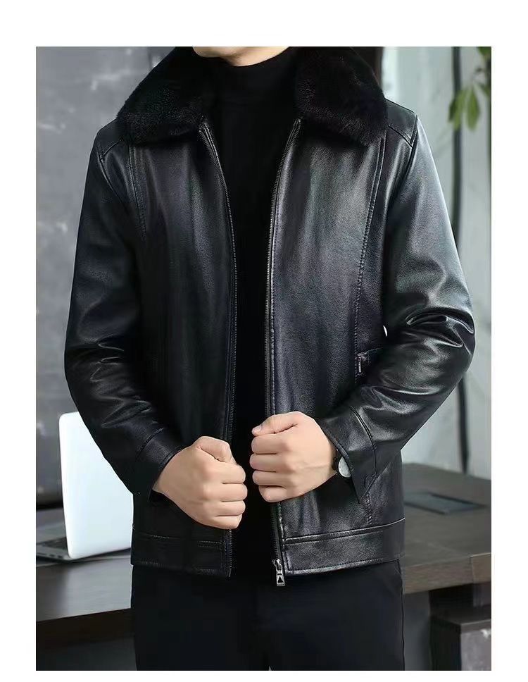 [클리어아웃 세일] 하닝 천연가죽 남성용 대형 퍼 칼라 가죽자켓 플러스 벨벳 두꺼운 중노년 따뜻한 가죽자켓스토어 가기