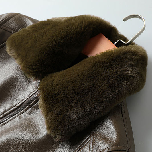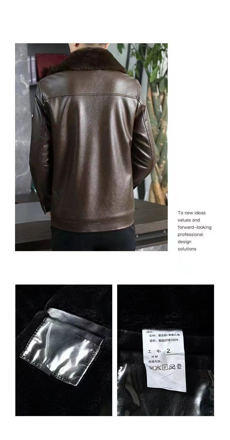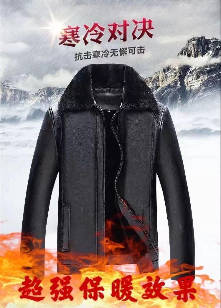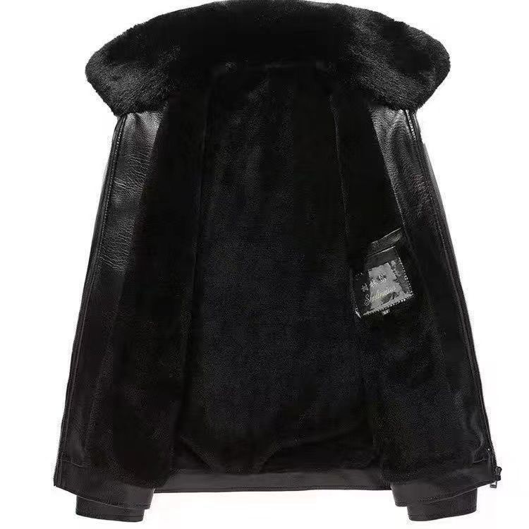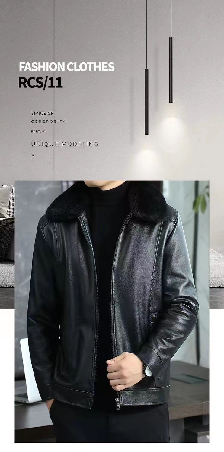 [클리어아웃 세일] 하닝 천연가죽 남성용 대형 퍼 칼라 가죽자켓 플러스 벨벳 두꺼운 중노년 따뜻한 가죽자켓스토어 가기