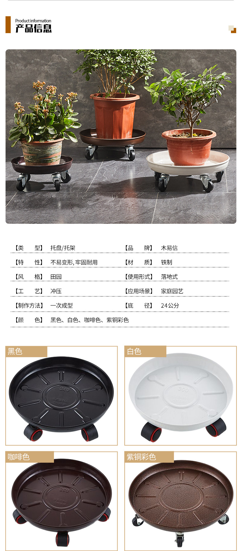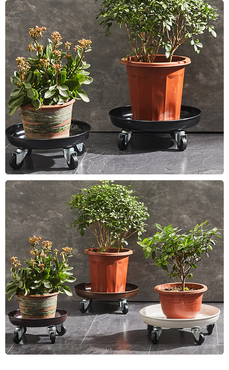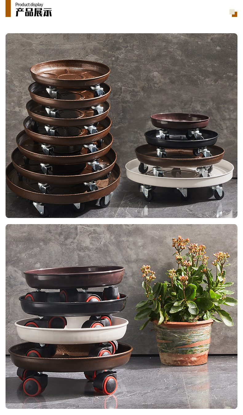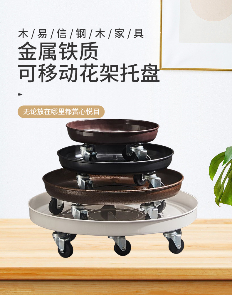 공장 도매 금속 두꺼운 모바일 꽃 스탠드 꽃 트레이 매트 베이스 범용 휠 트레이 꽃 냄비 바닥 냄비 홀더 라운드