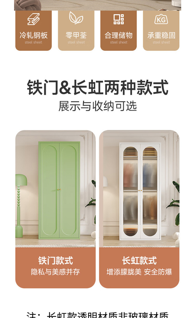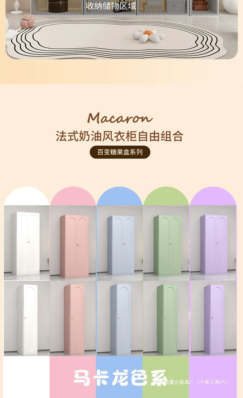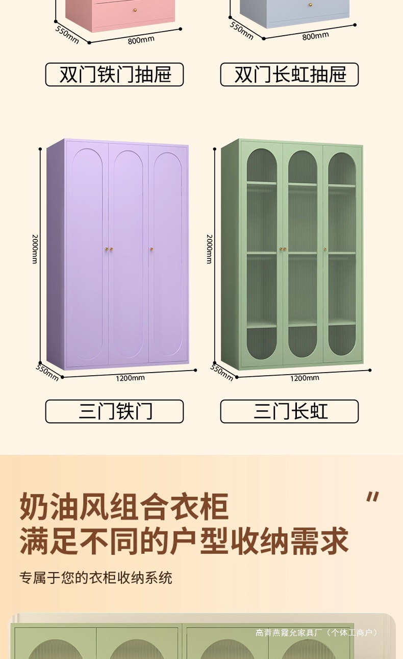프랑스 크림 스타일 옷장 철제 스틸 옷장 어린이 옷장 침실 홈 포름알데히드 프리 대용량 보관 캐비닛