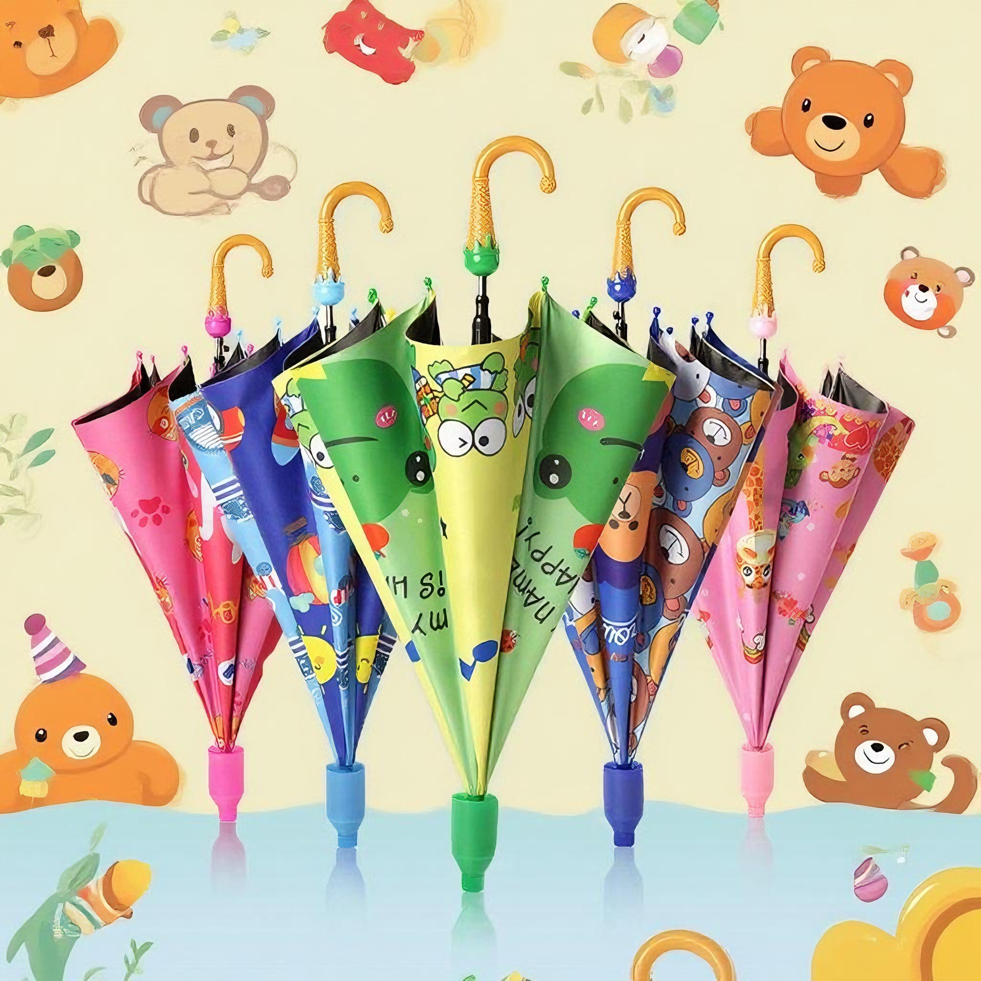 방수 커버가 있는 8본 긴 손잡이, 6~12세 어린이를 위한 만화 어린이 우산, 학교용 특수 우산, 학생용 어린이 우산