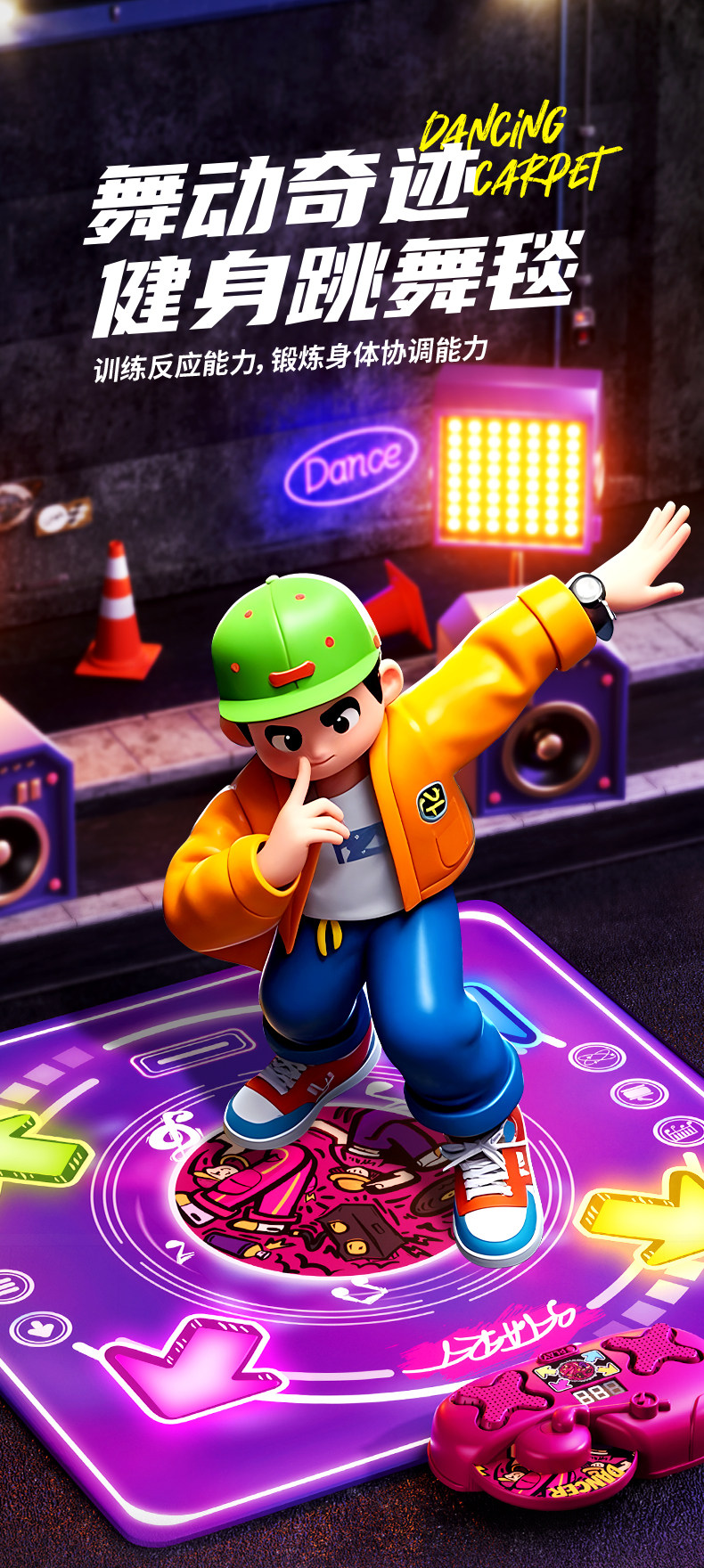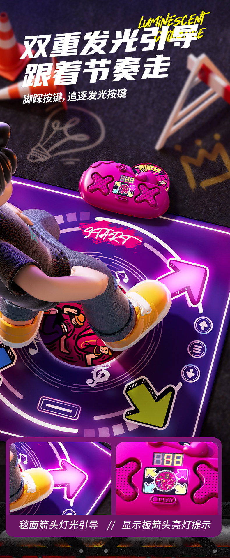 • 업그레이드된 뮤직댄스 피트니스 매트 [블루투스/듀얼라이트] 듀얼리튬배터리