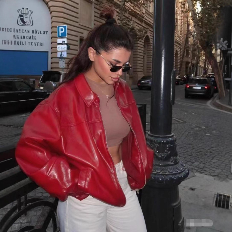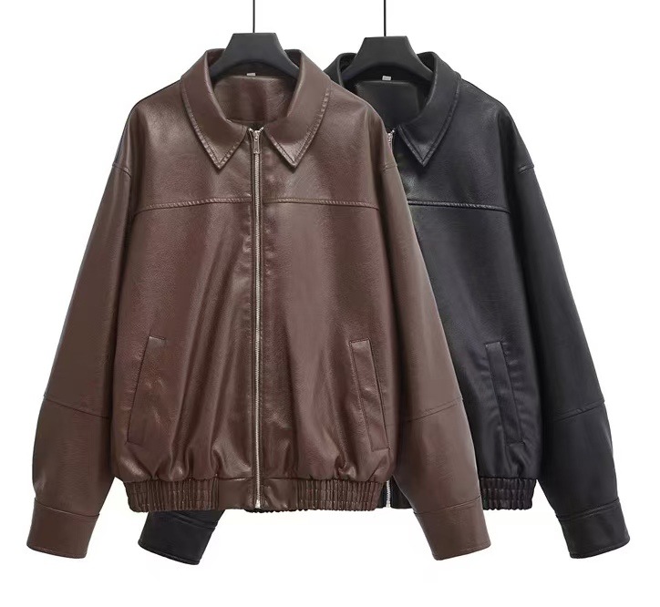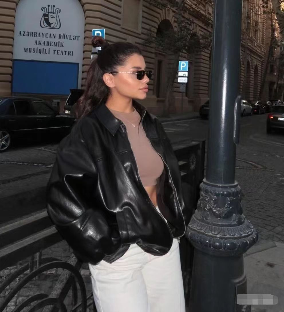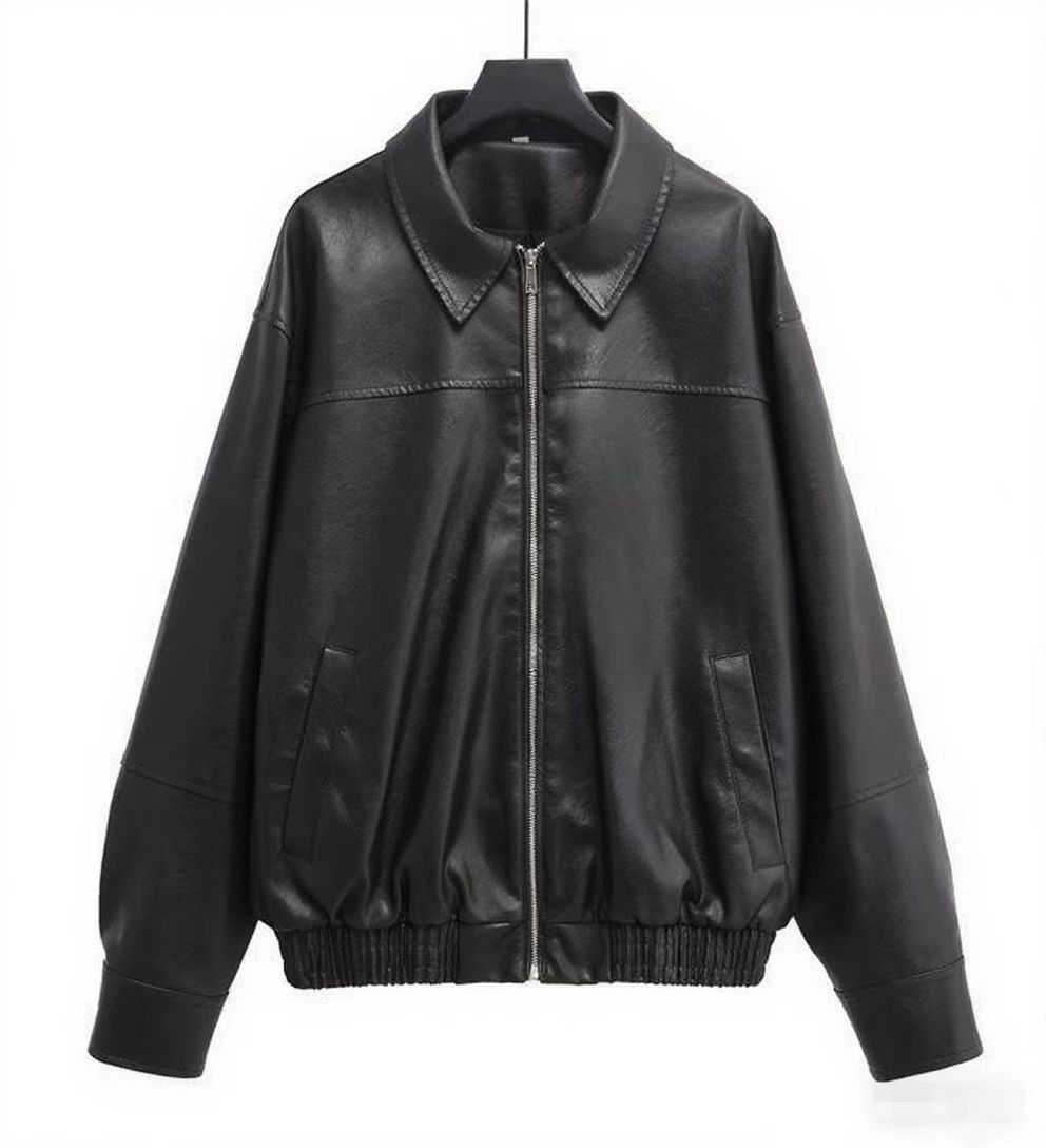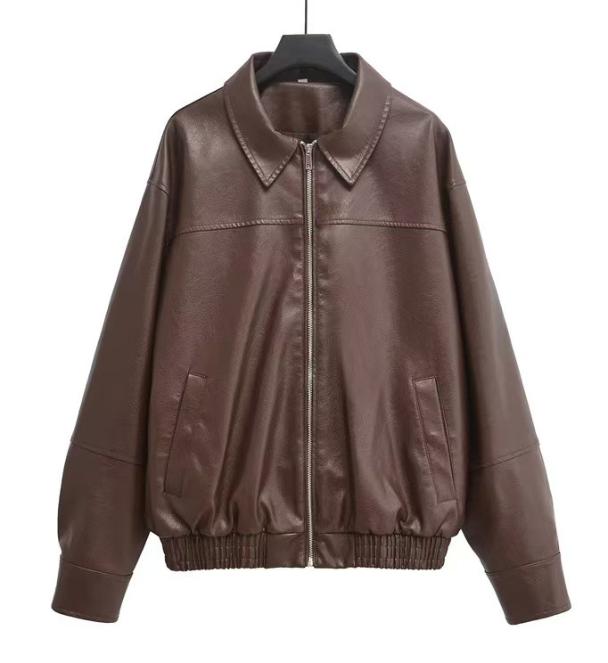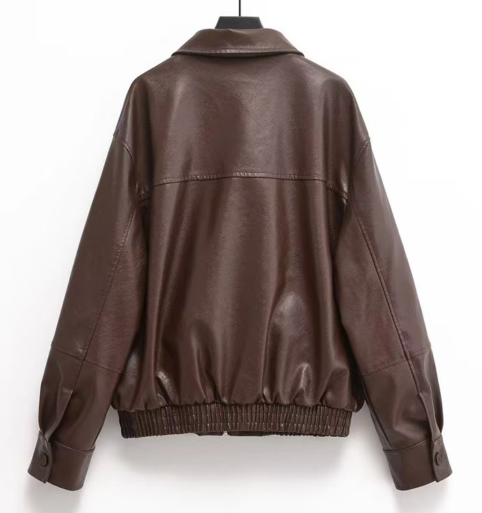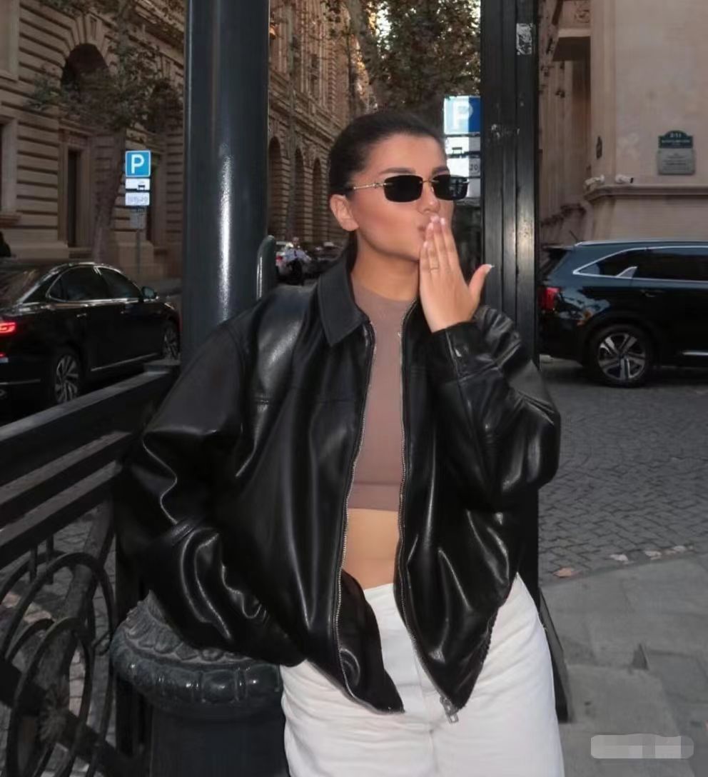 유럽과 미국 의류 도매 2025 봄 신작 캐주얼 질감 폭격기 재킷 느슨한 버전 여성 가죽 코트스토어 가기
