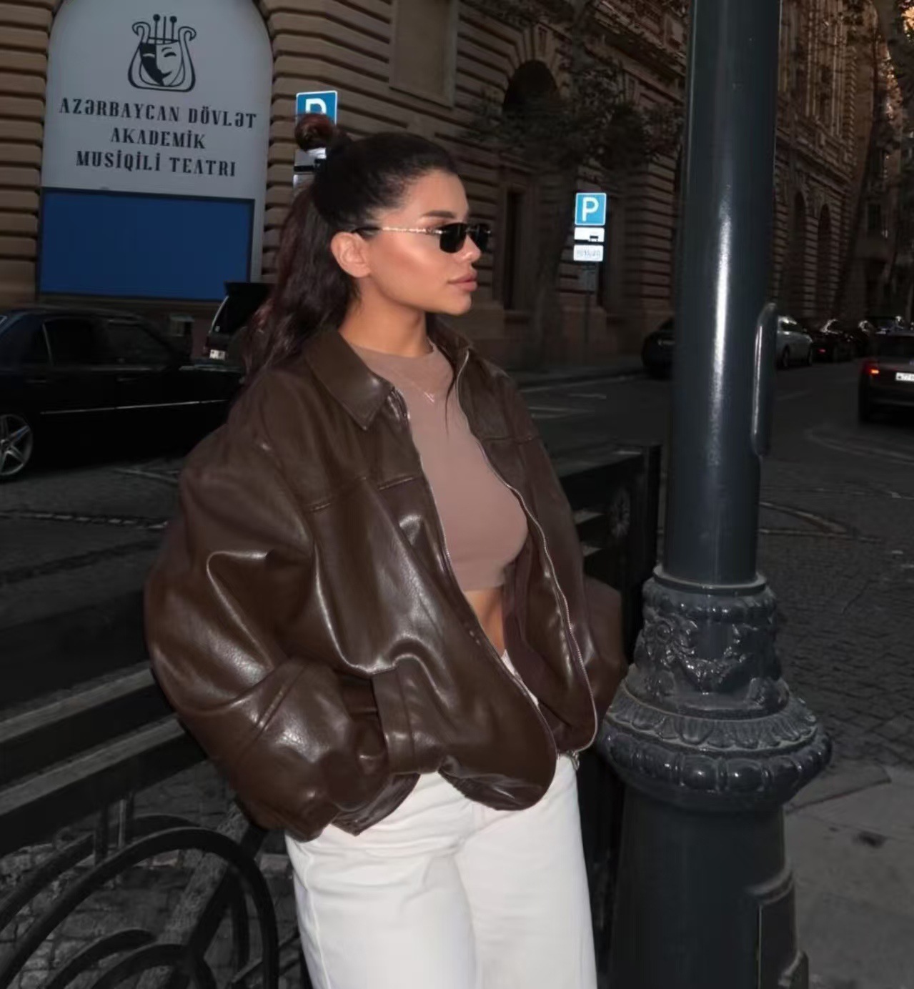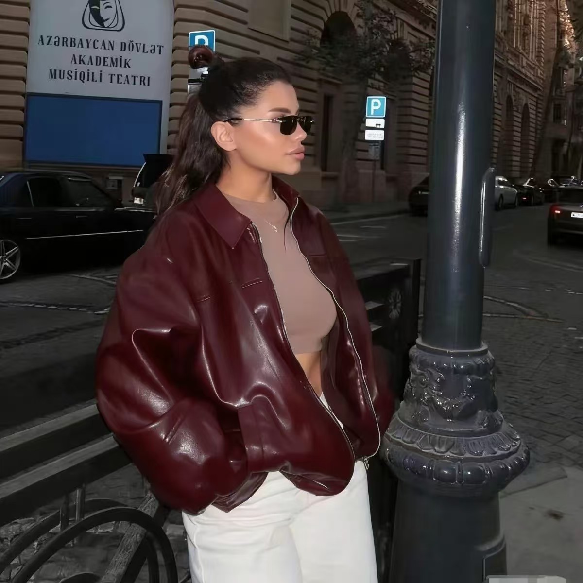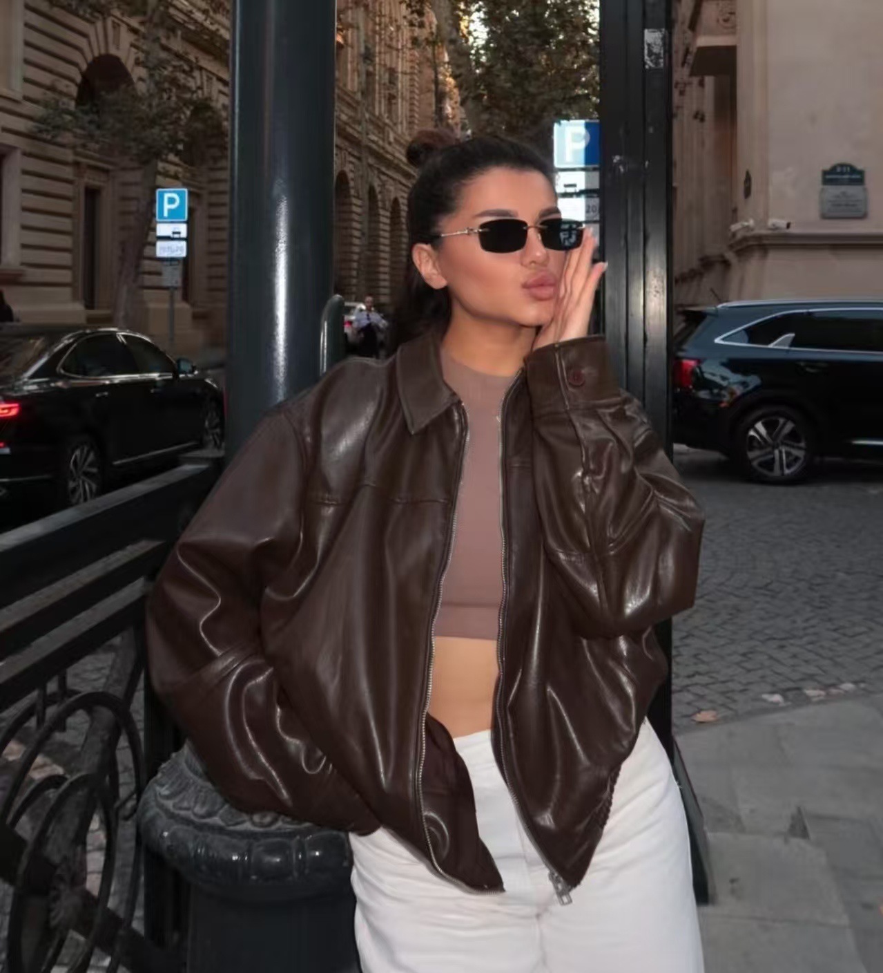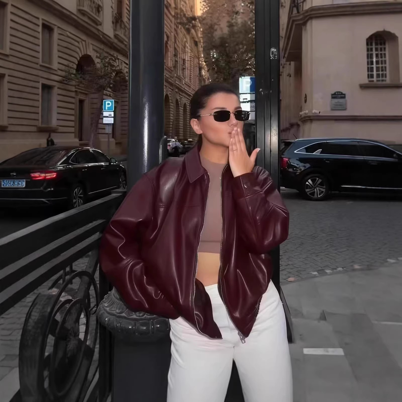 유럽과 미국 의류 도매 2025 봄 신작 캐주얼 질감 폭격기 재킷 느슨한 버전 여성 가죽 코트스토어 가기