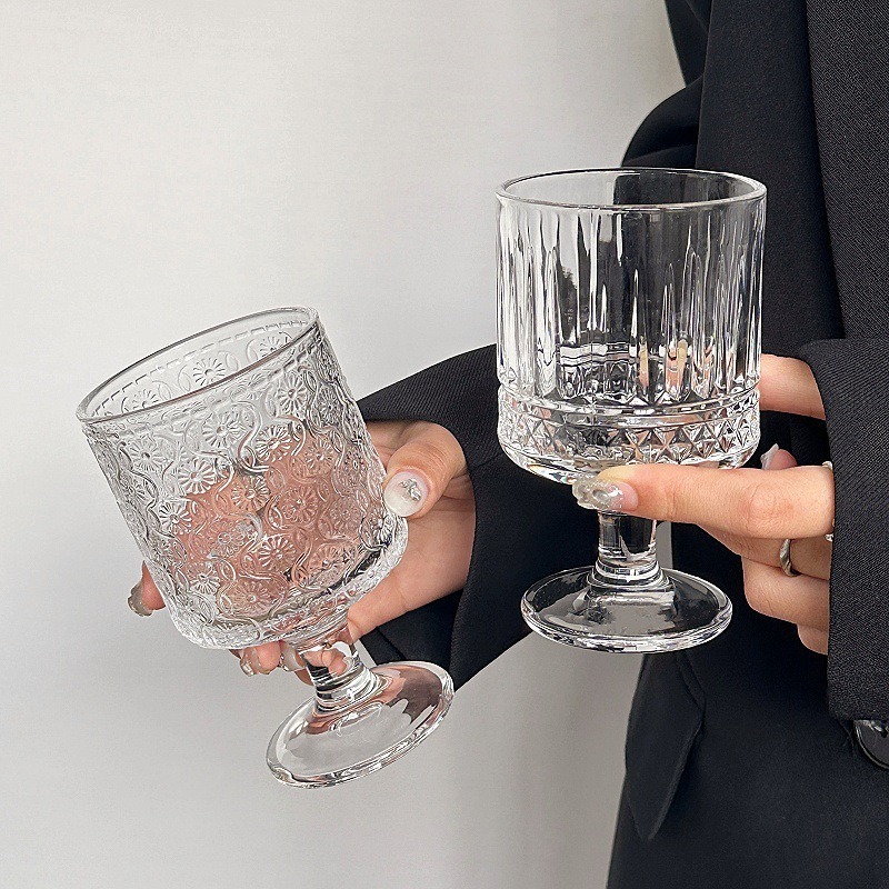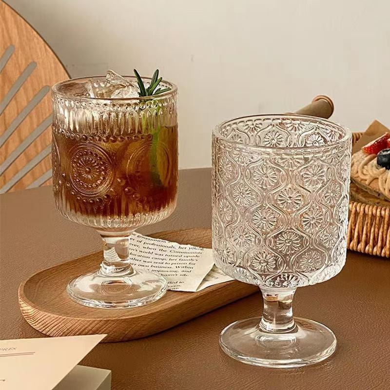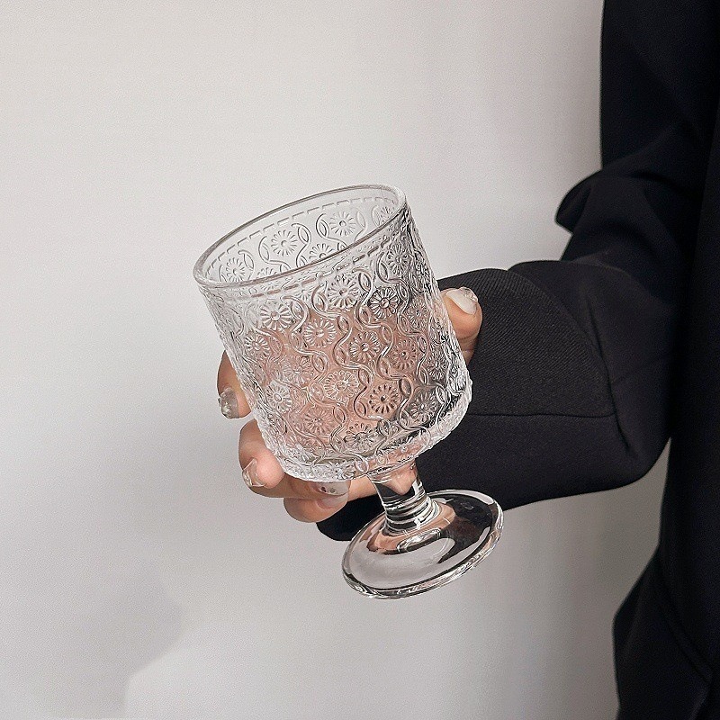 레트로 인 스타일 해바라기 양각 유리 고급 와인 잔 디자인 음료 주스 하이 워터 컵