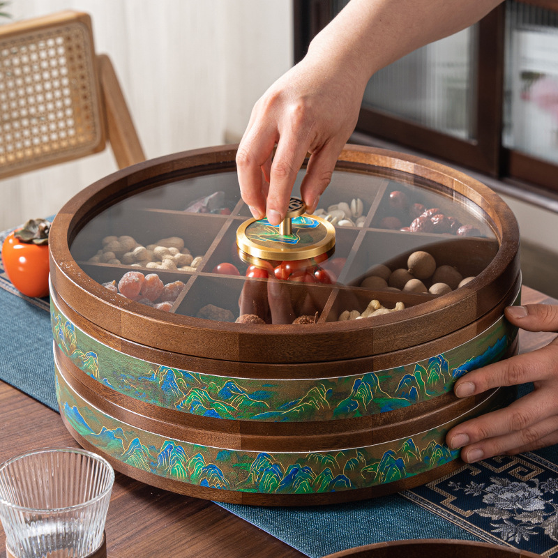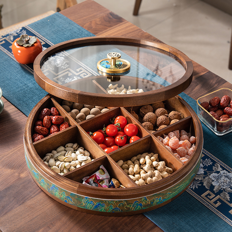 거실과 차방을 위한 새로운 중국식 단단한 나무 건조 과일 접시, 고급스럽고 절묘하며 고급스러운 멜론 씨앗, 건조 과일 및 견과류 보관 상자스토어 가기