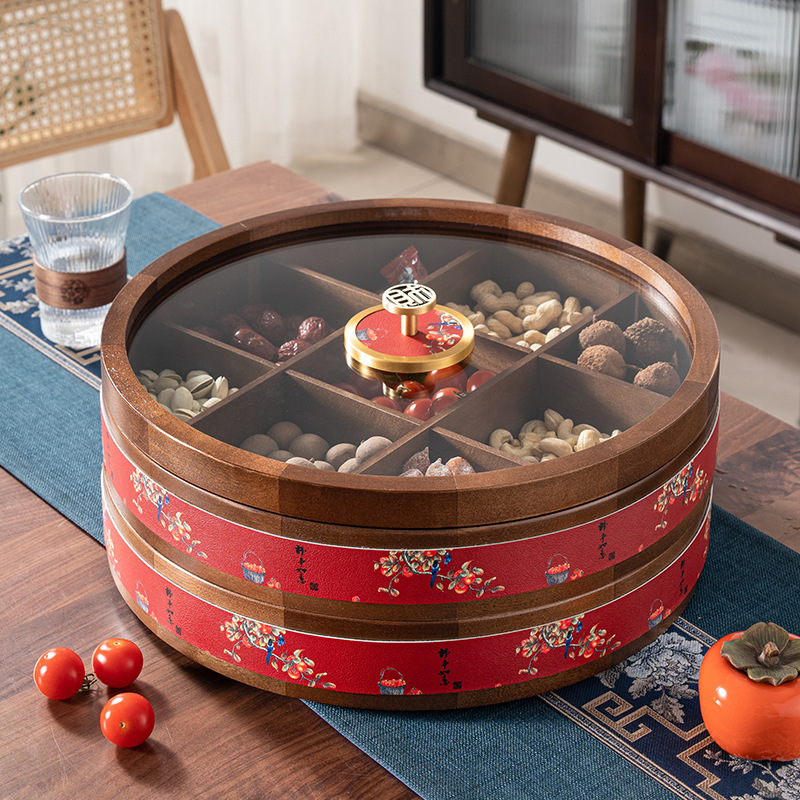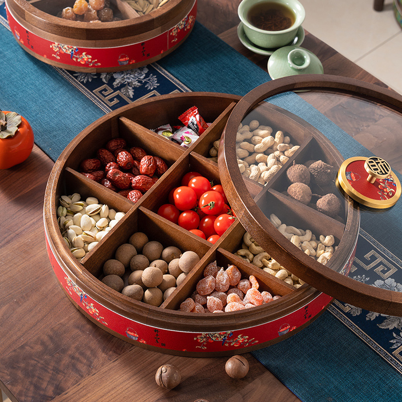 거실과 차방을 위한 새로운 중국식 단단한 나무 건조 과일 접시, 고급스럽고 절묘하며 고급스러운 멜론 씨앗, 건조 과일 및 견과류 보관 상자