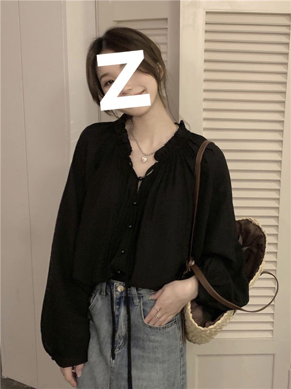 여성을위한 새로운 중국 스타일 쉬폰 셔츠 여름 2025 새로운 스타일 긴팔 작은 레이스 업 루즈 탑