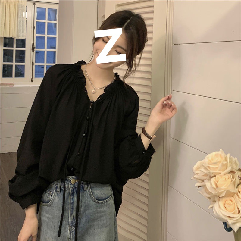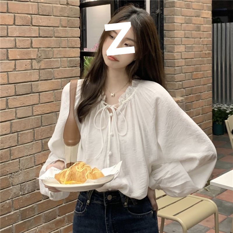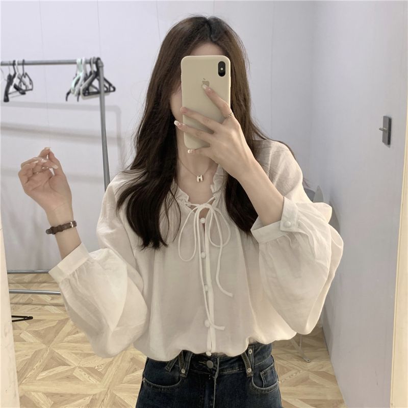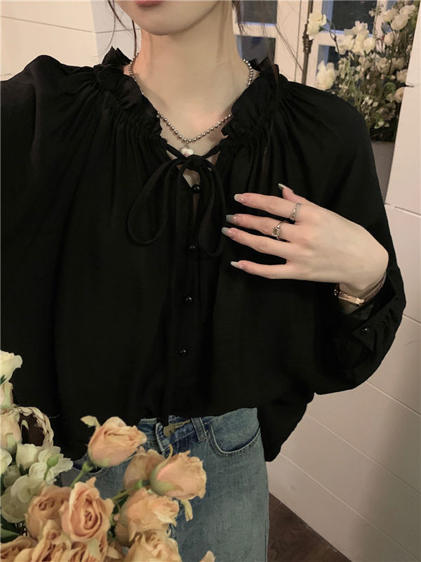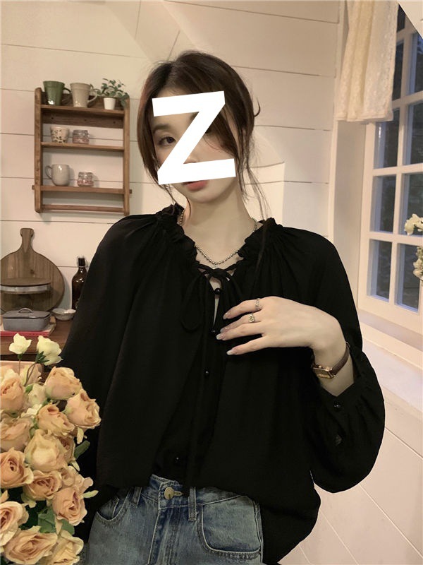 여성을위한 새로운 중국 스타일 쉬폰 셔츠 여름 2025 새로운 스타일 긴팔 작은 레이스 업 루즈 탑스토어 가기