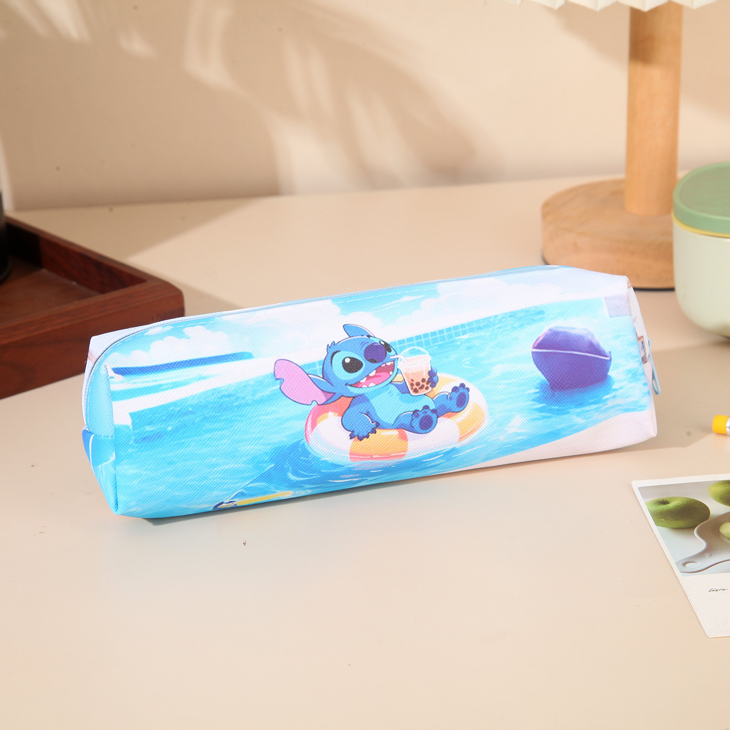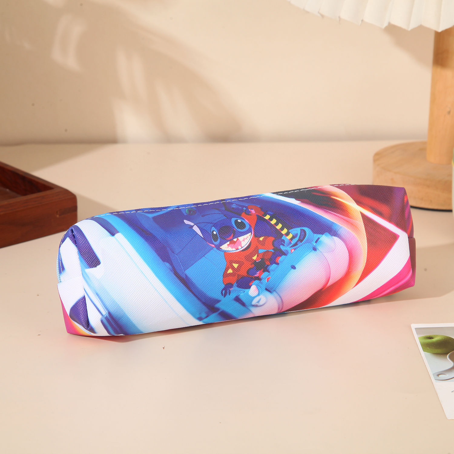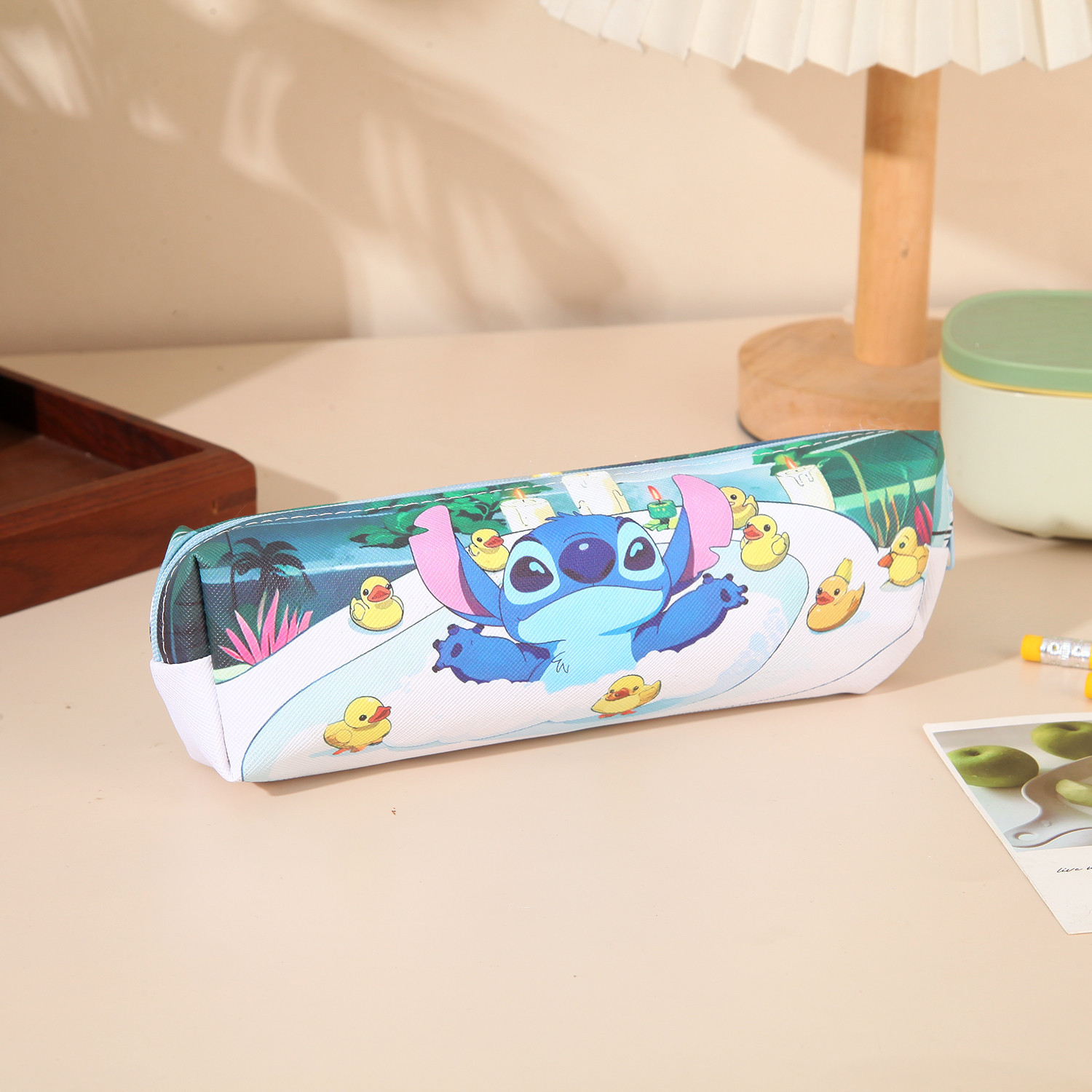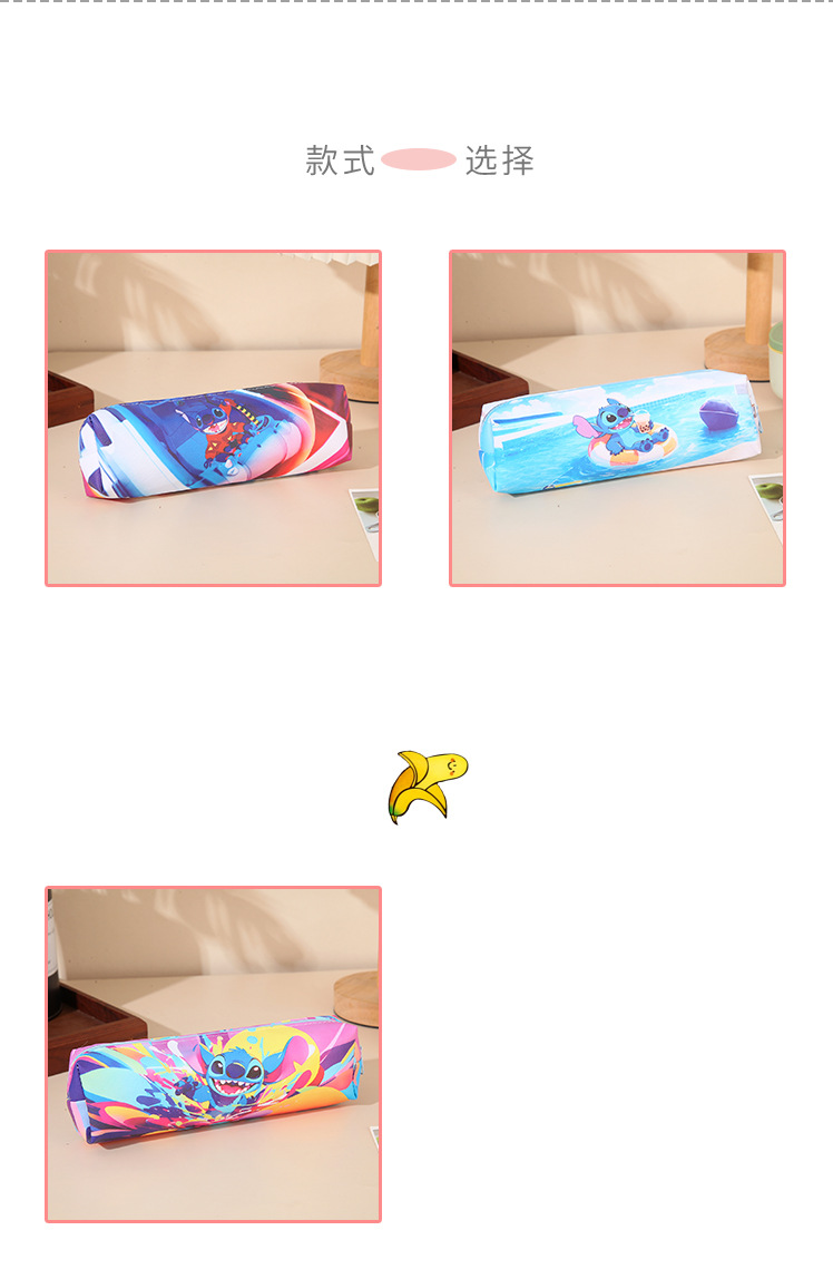 새로운 만화 스티치 어린이 연필 가방 pu 양면 전체 인쇄 연필 가방 대용량 학생 문구 보관 가방