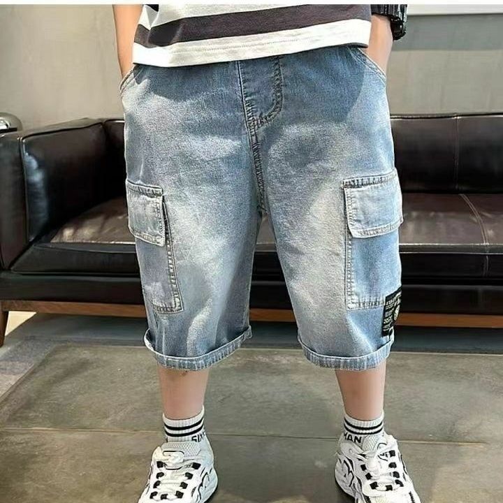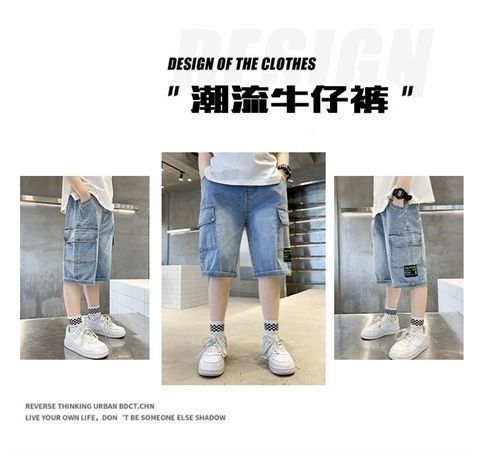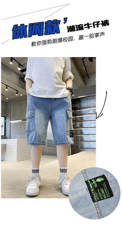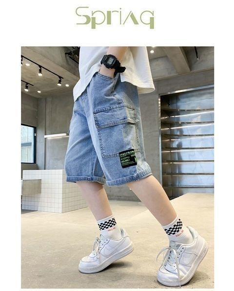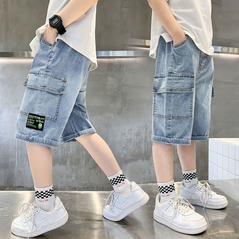 남아 데님 반바지 여름 2025 신상 아동 작업복 바지 얇은 소재 중대형 아동 여름용