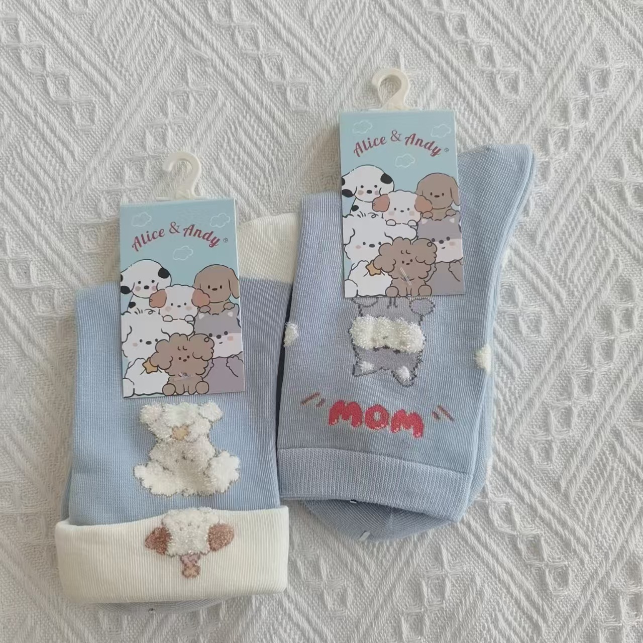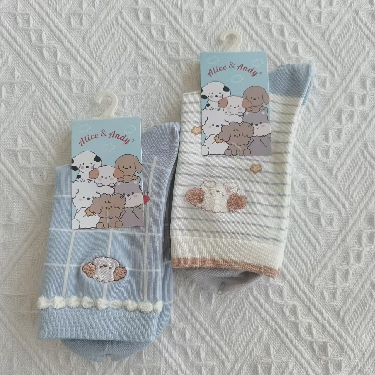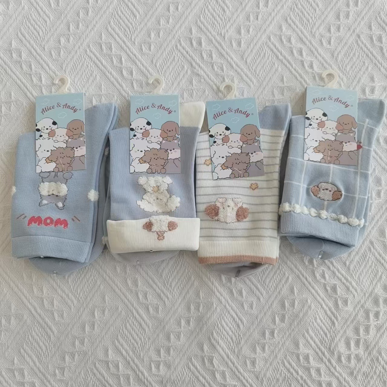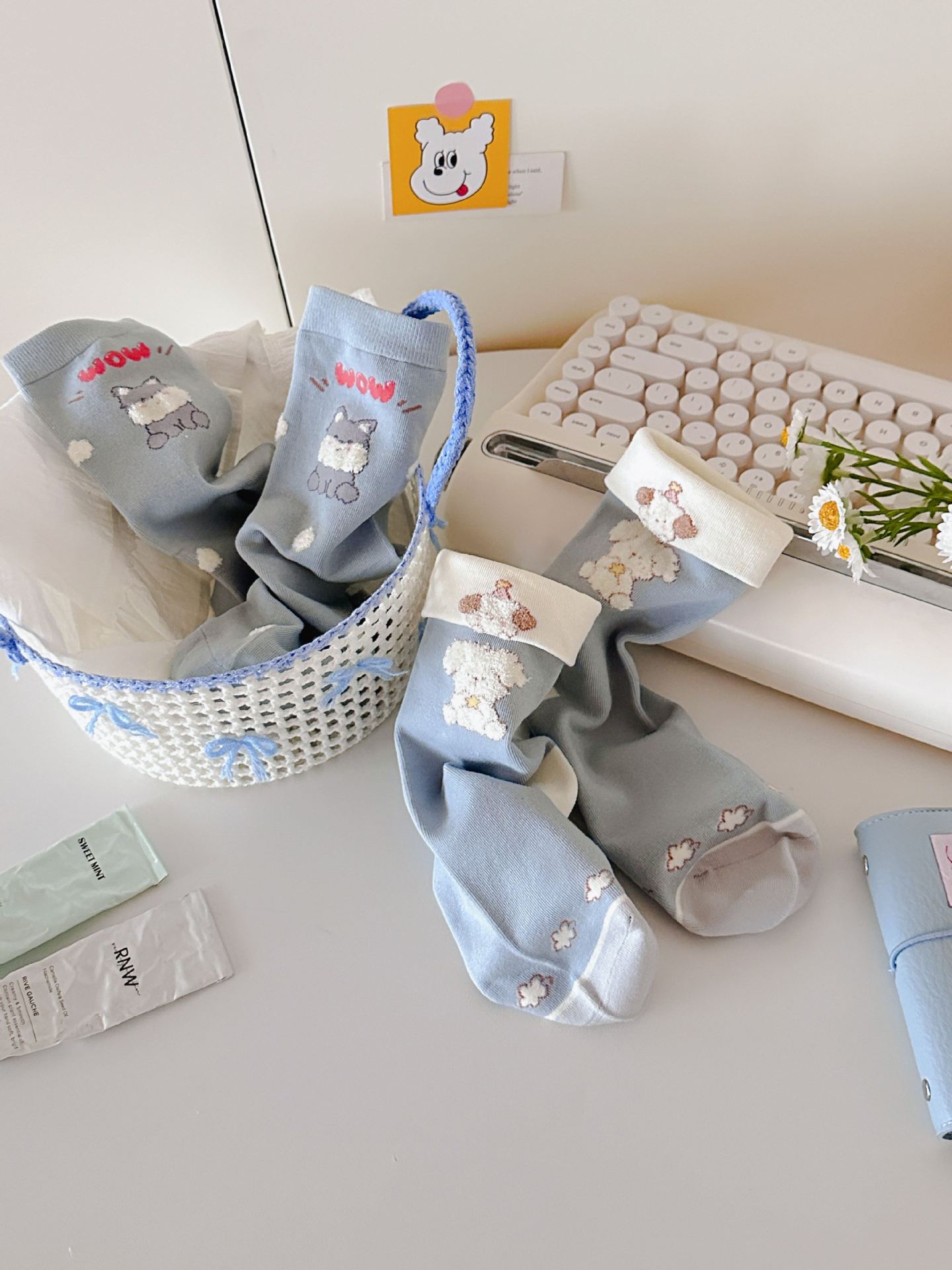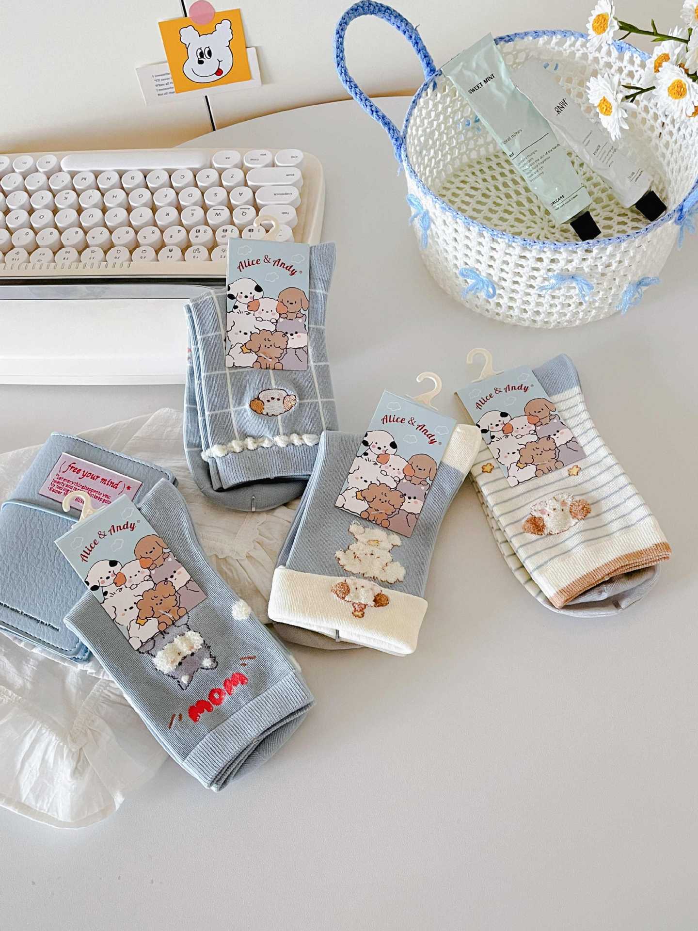 앨리스 앤 앤디 봄과 가을 새로운 만화 귀여운 모리 친구 강아지 중간 튜브 양말 블루 트렌디 여성 양말스토어 가기