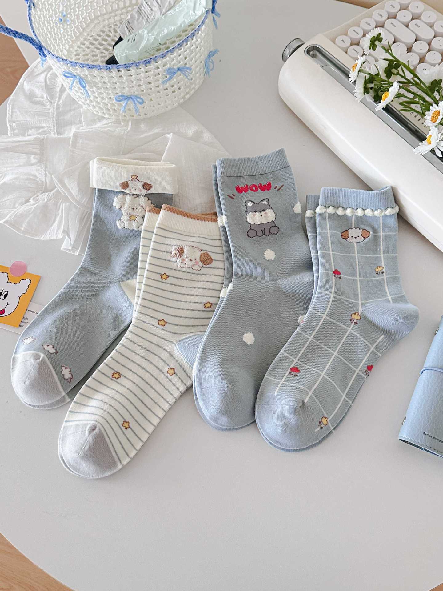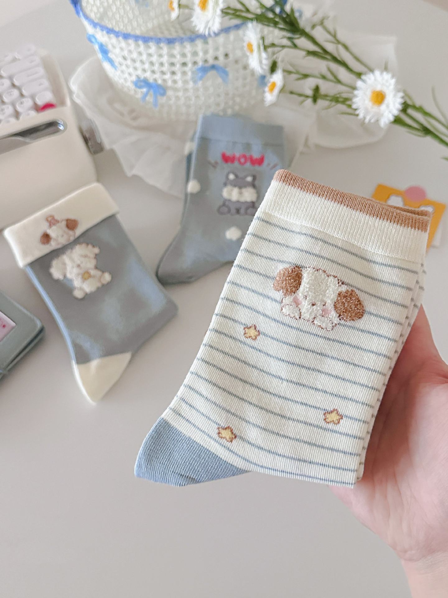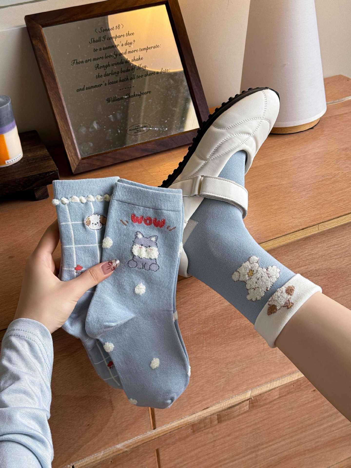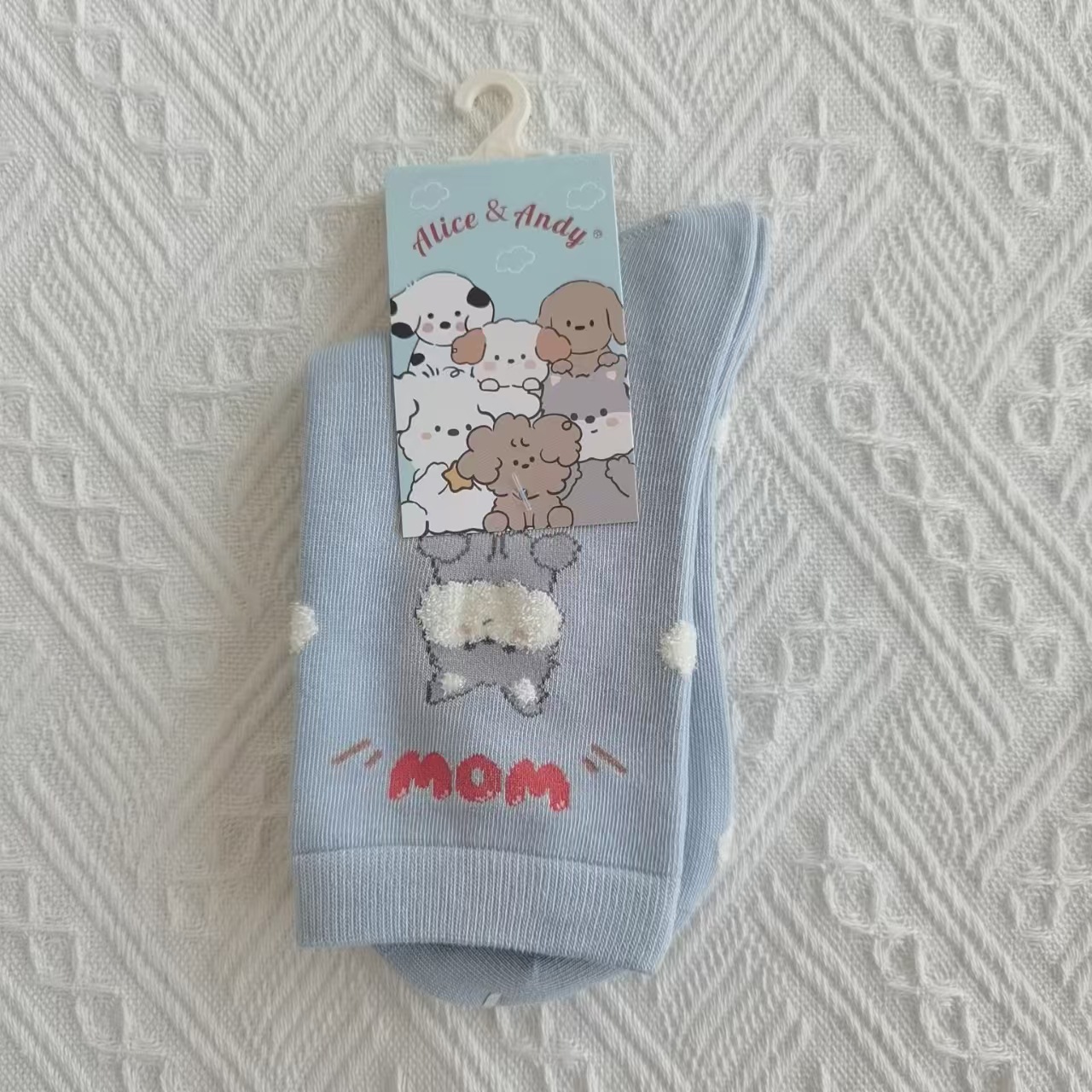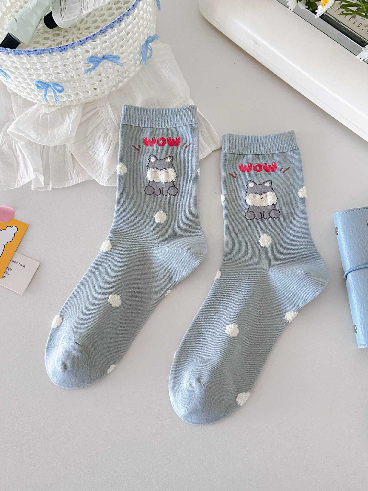 앨리스 앤 앤디 봄과 가을 새로운 만화 귀여운 모리 친구 강아지 중간 튜브 양말 블루 트렌디 여성 양말스토어 가기