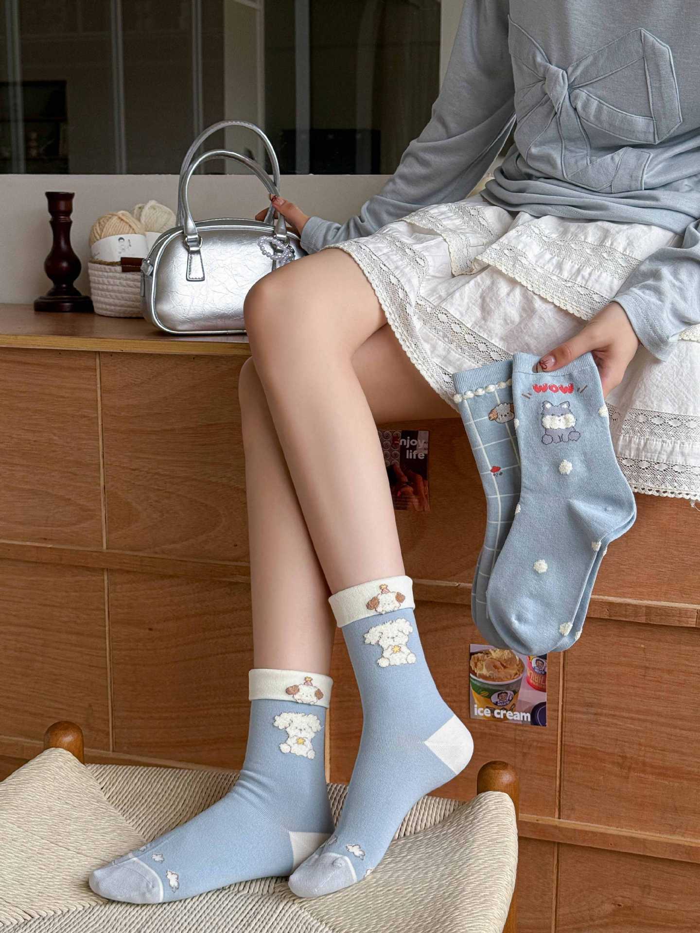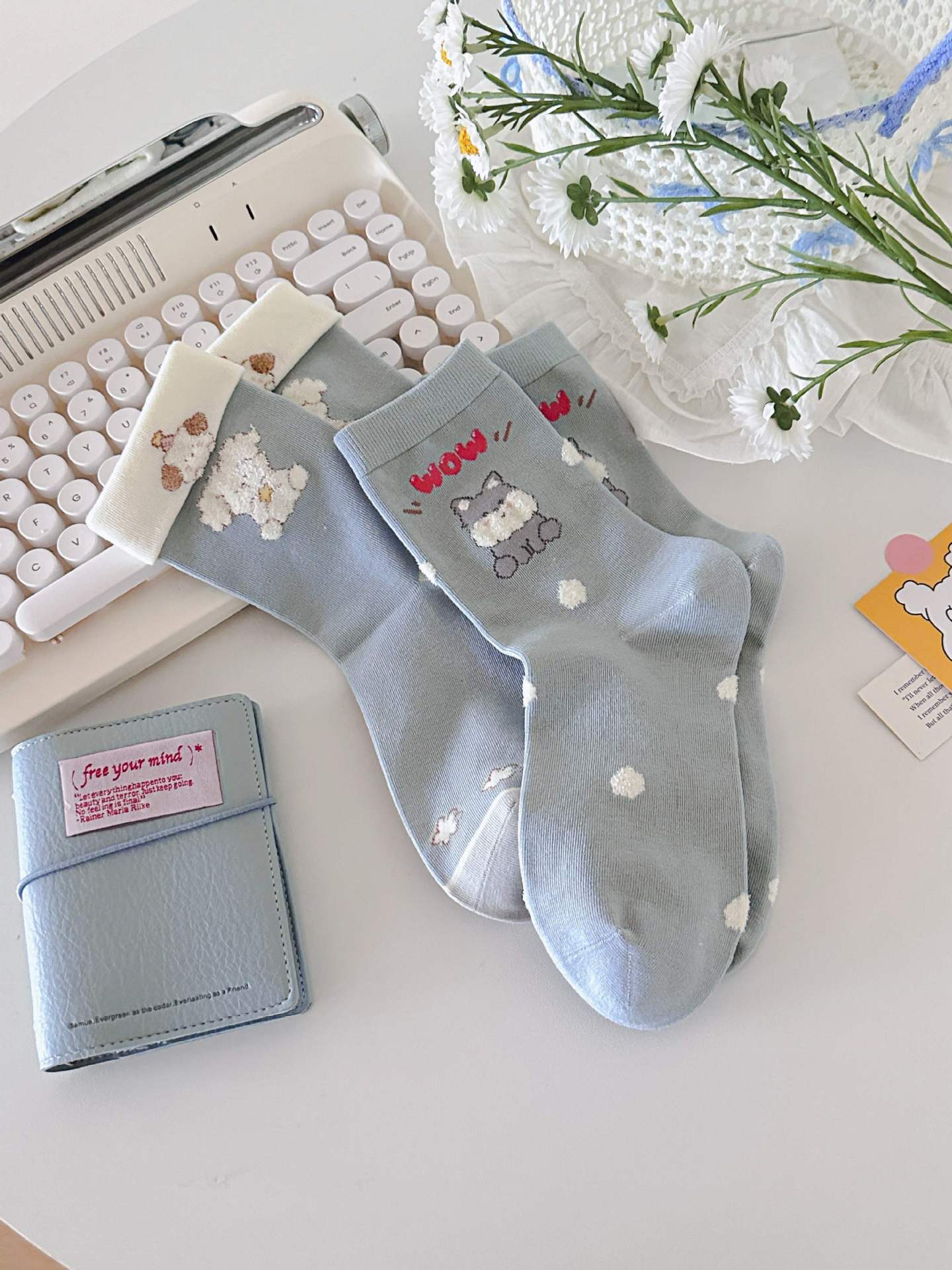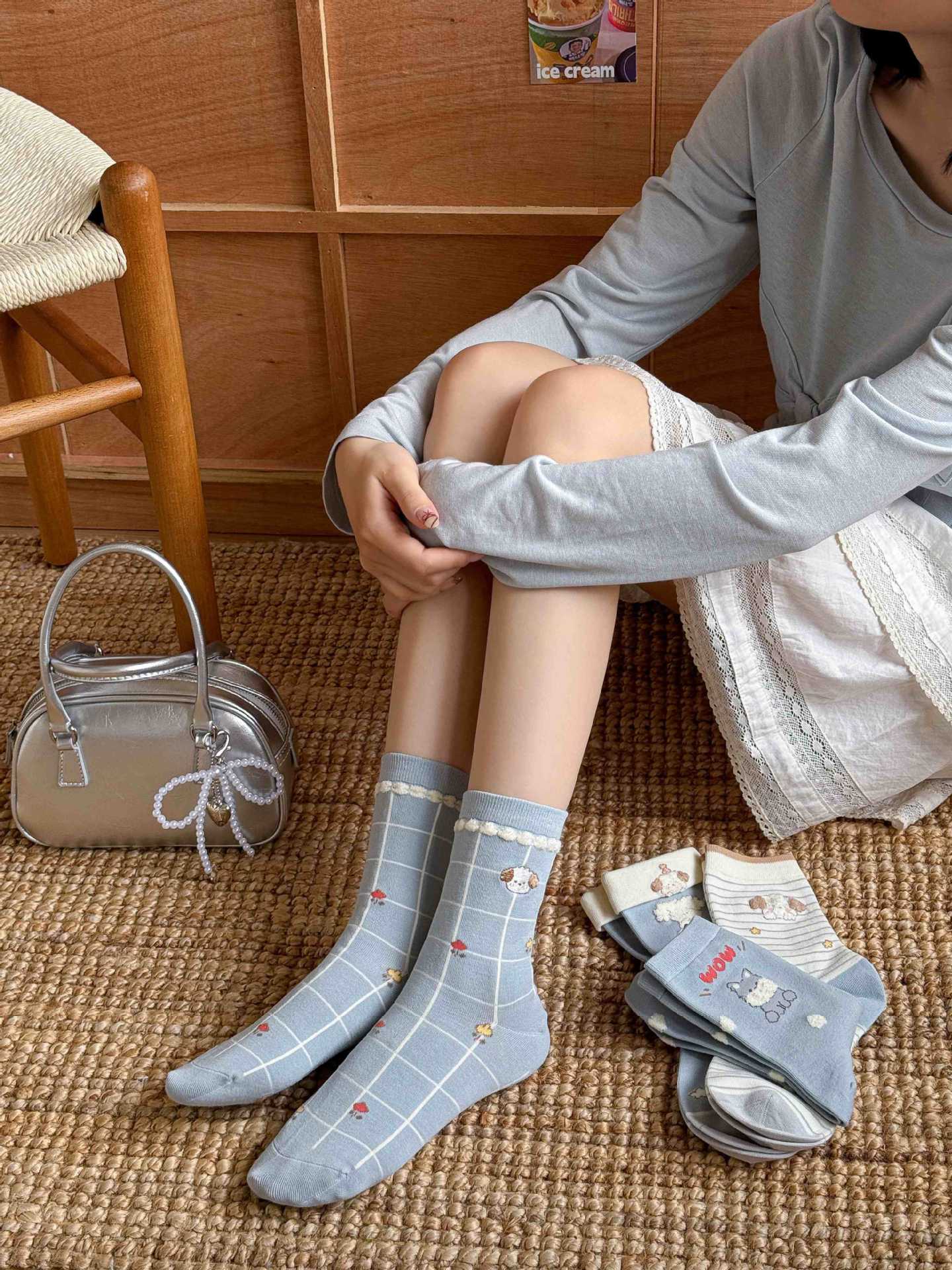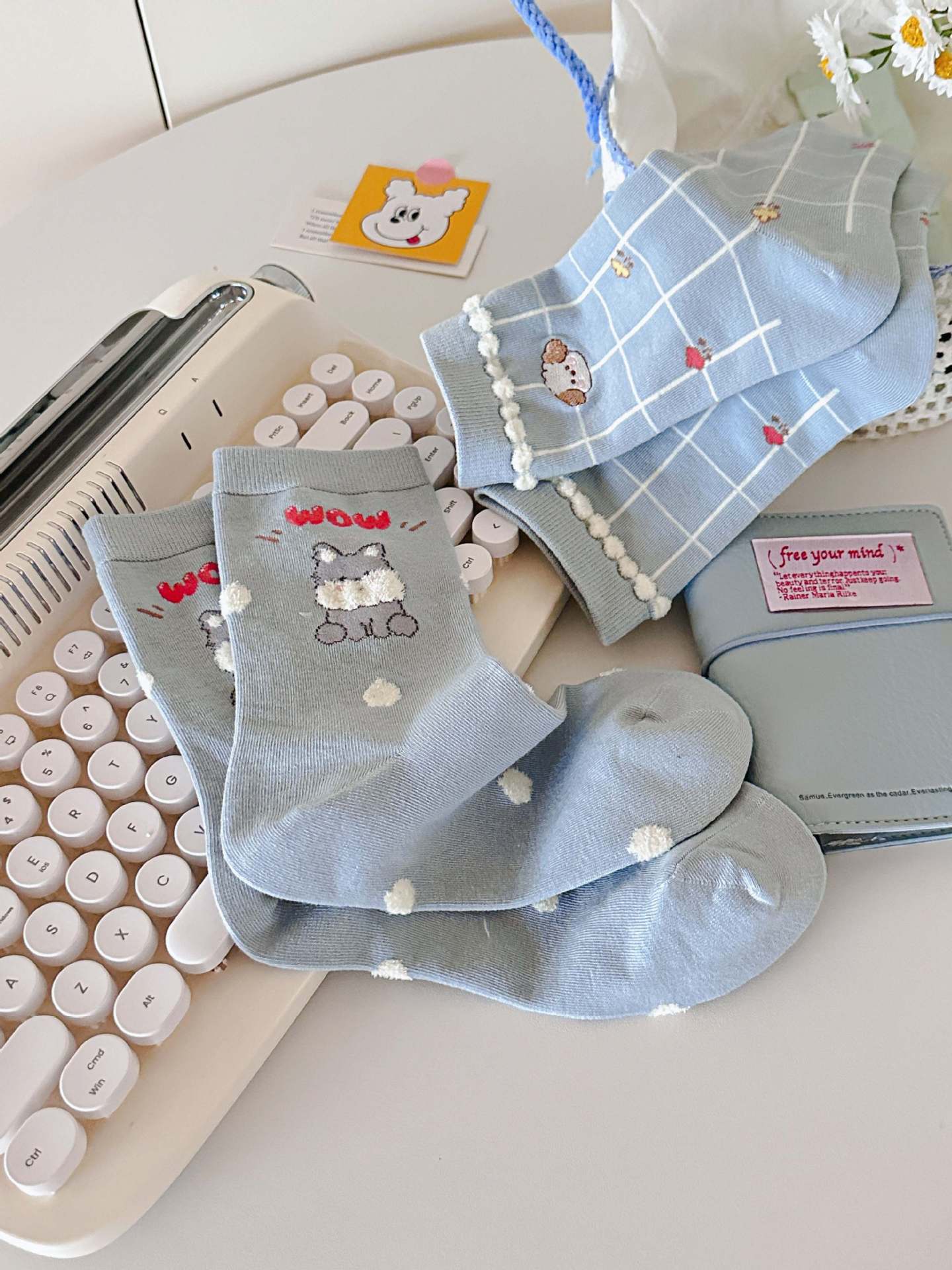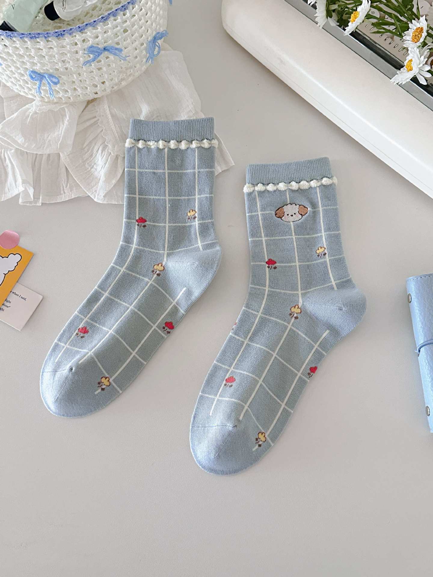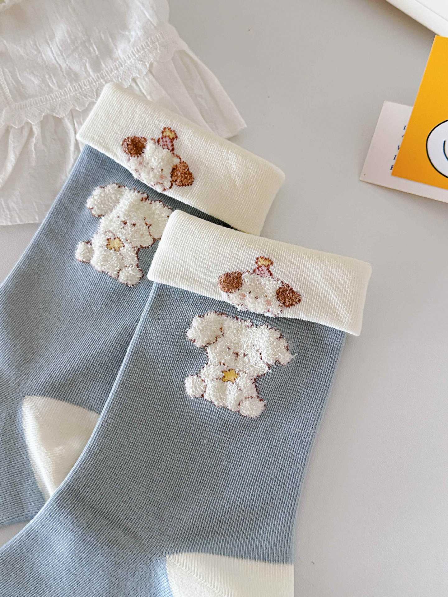 앨리스 앤 앤디 봄과 가을 새로운 만화 귀여운 모리 친구 강아지 중간 튜브 양말 블루 트렌디 여성 양말스토어 가기