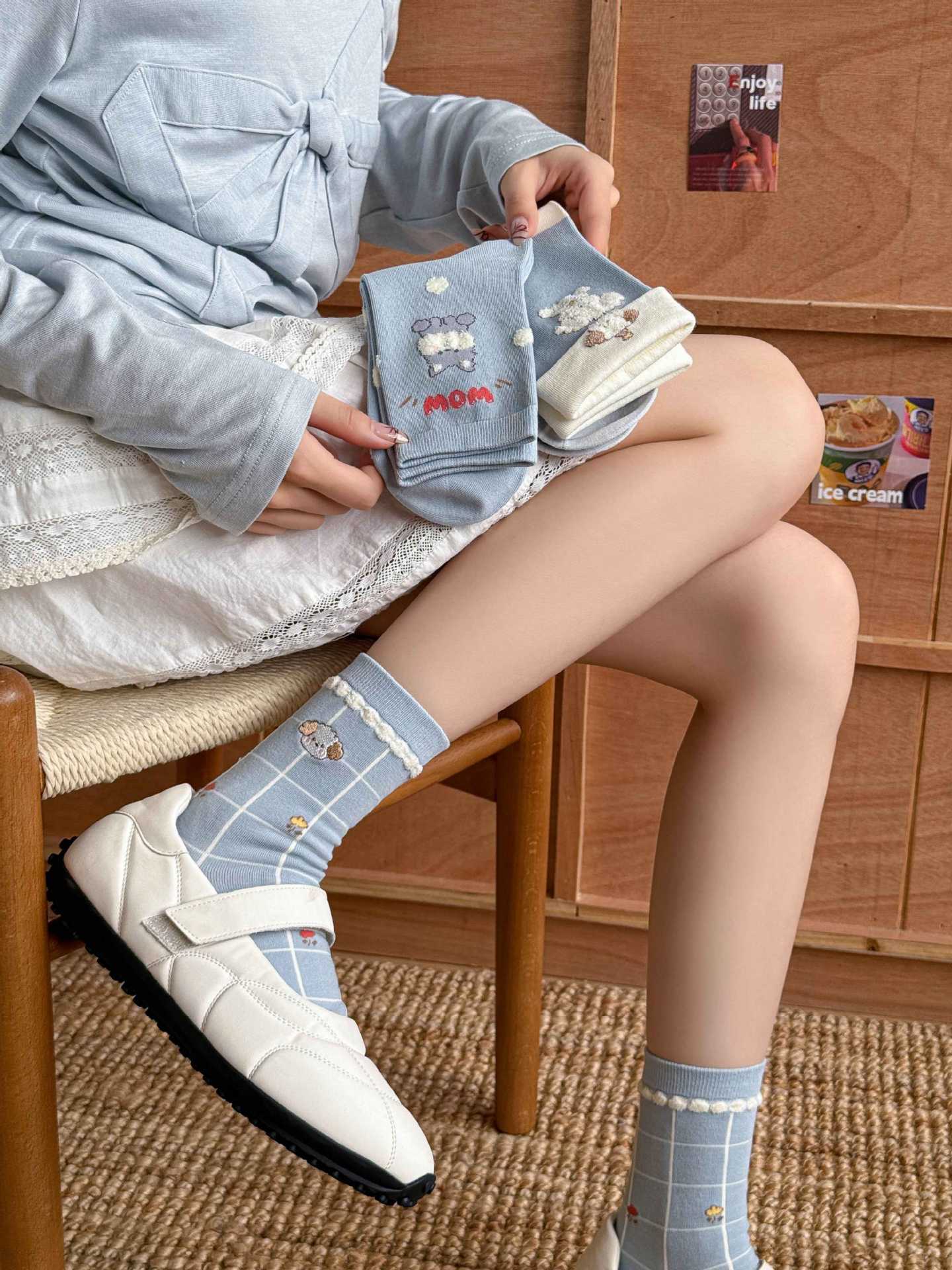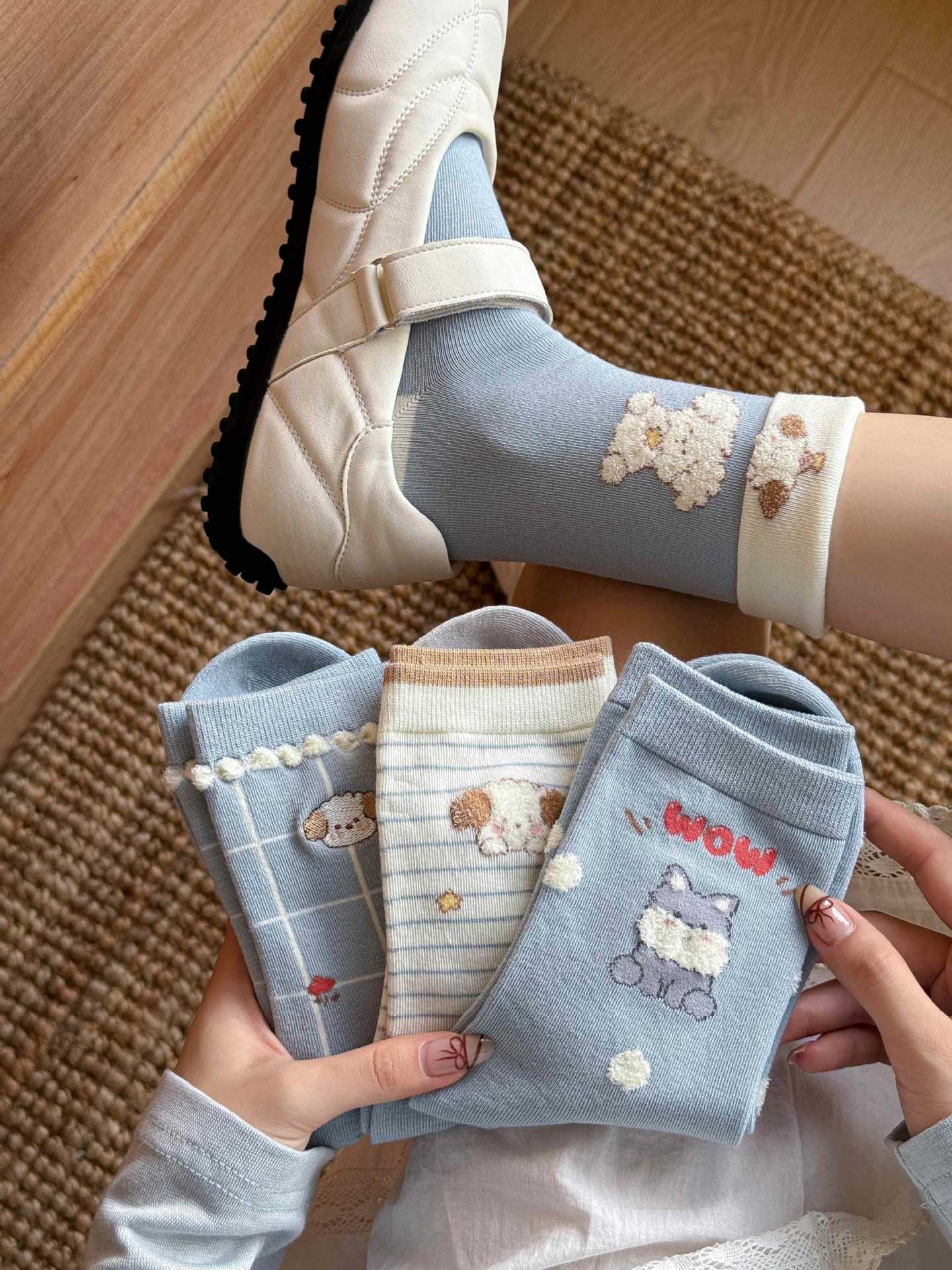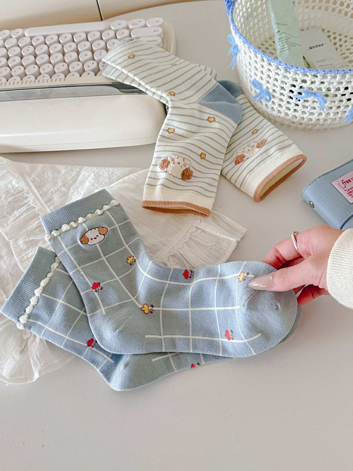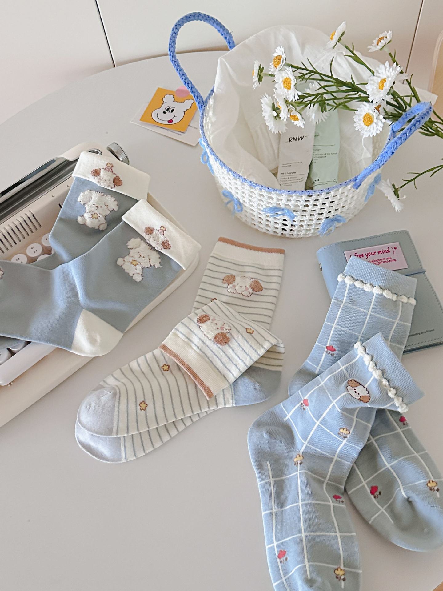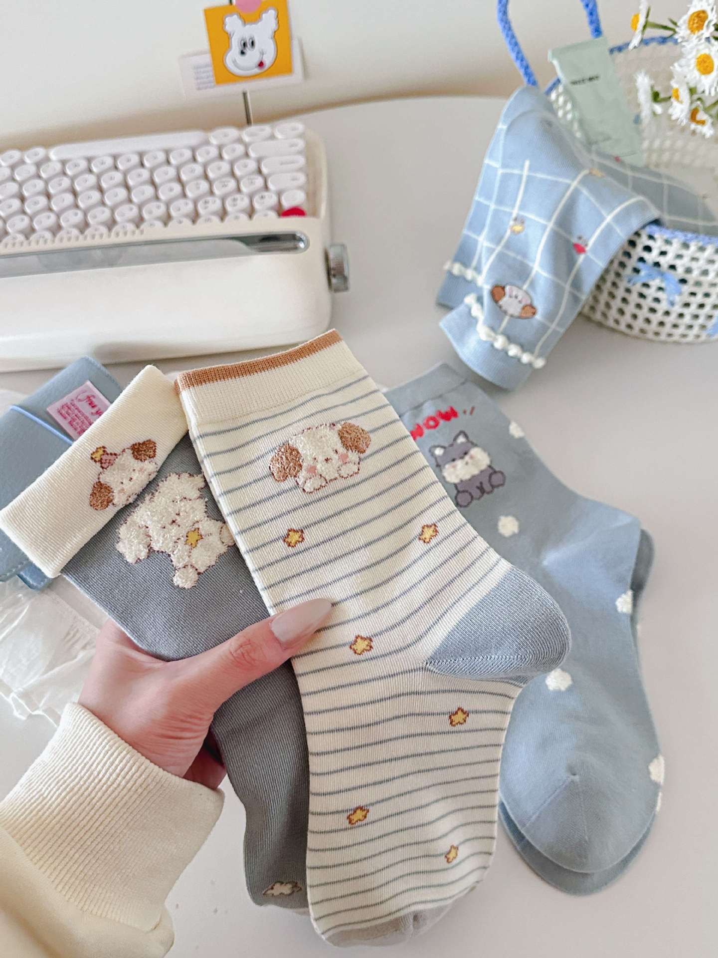 앨리스 앤 앤디 봄과 가을 새로운 만화 귀여운 모리 친구 강아지 중간 튜브 양말 블루 트렌디 여성 양말스토어 가기