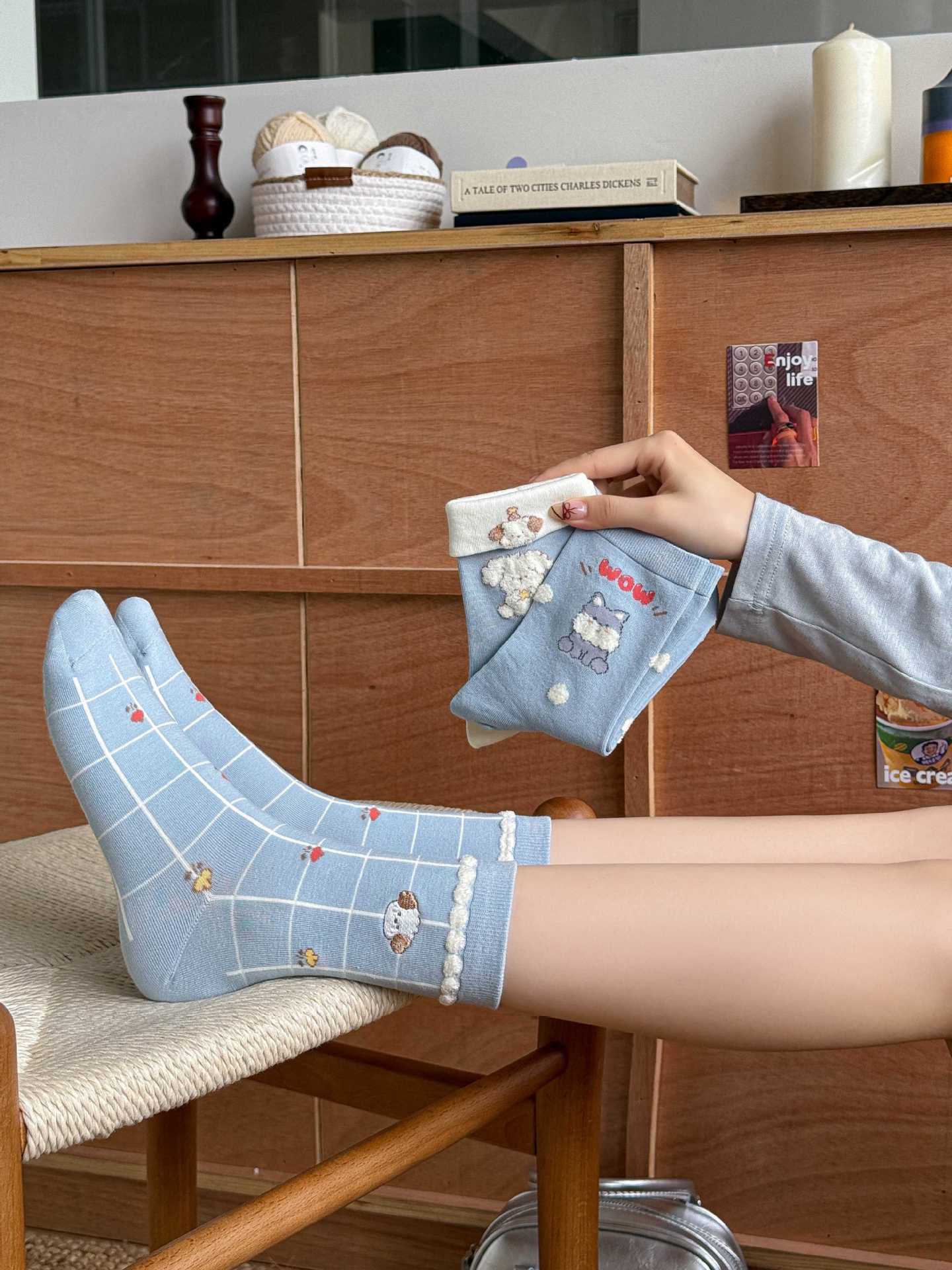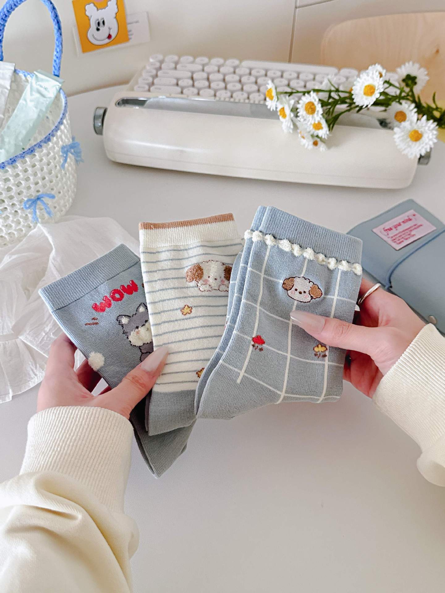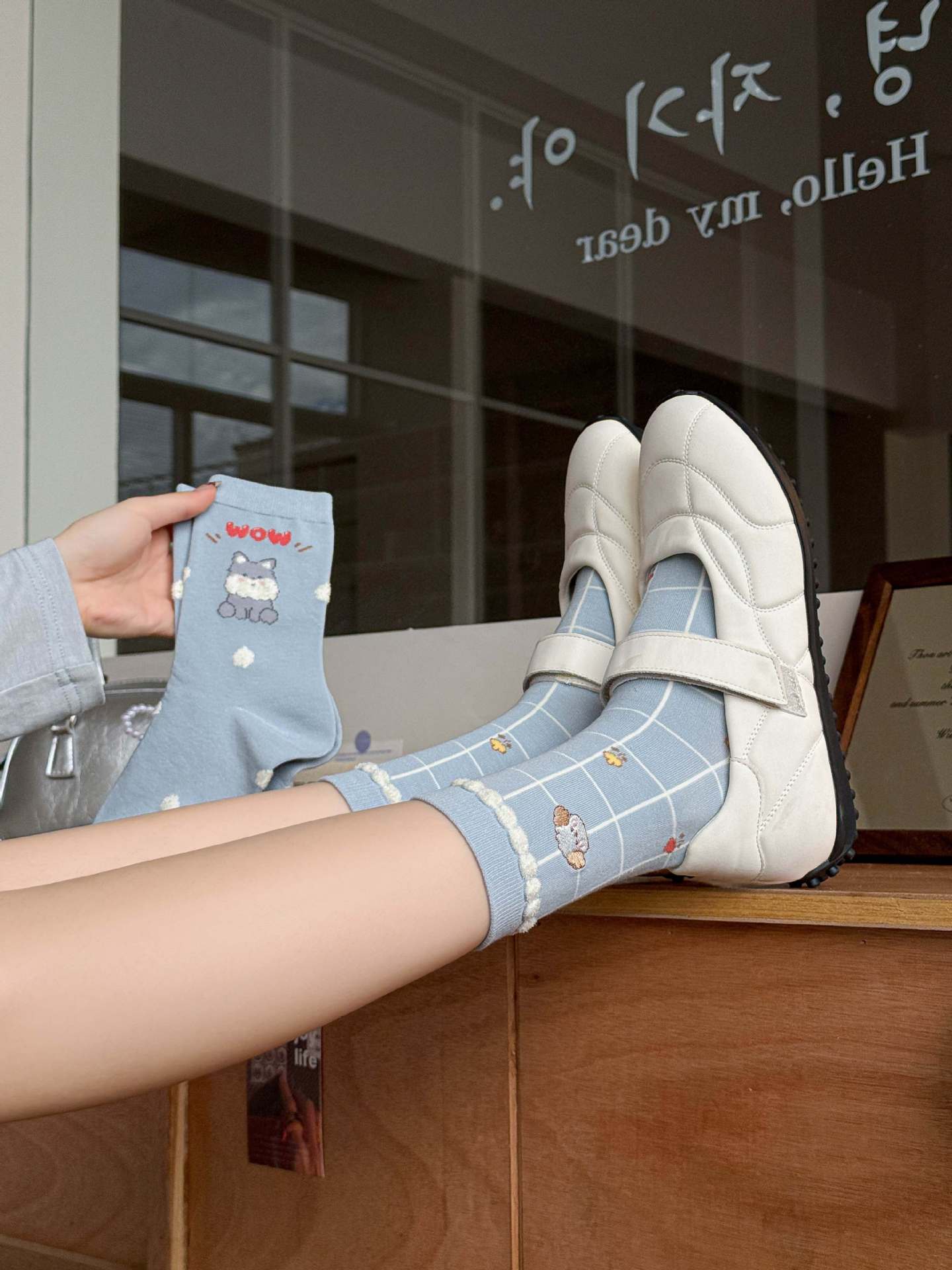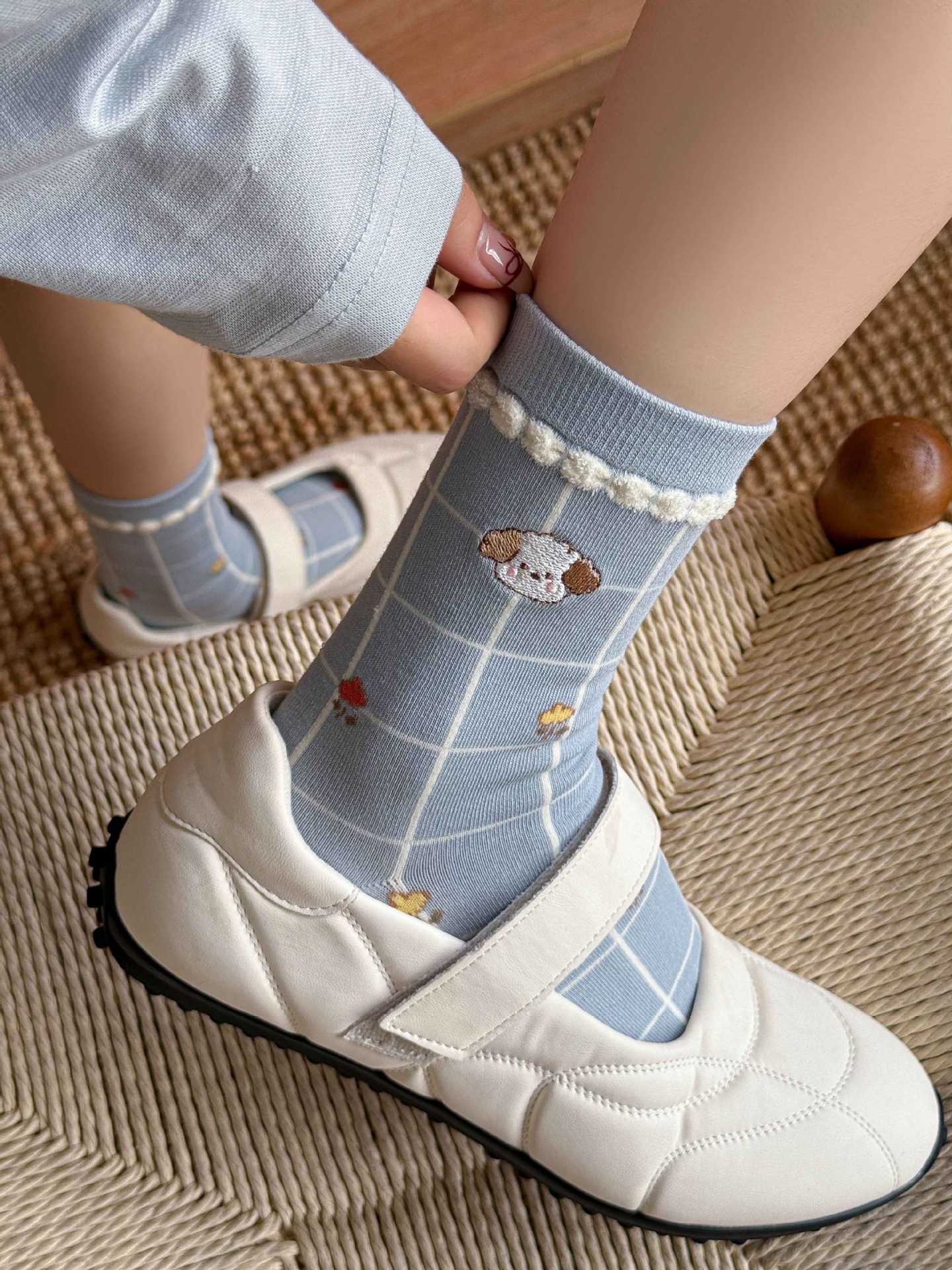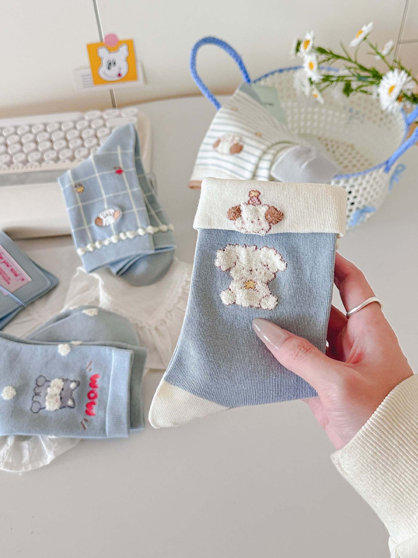 앨리스 앤 앤디 봄과 가을 새로운 만화 귀여운 모리 친구 강아지 중간 튜브 양말 블루 트렌디 여성 양말스토어 가기