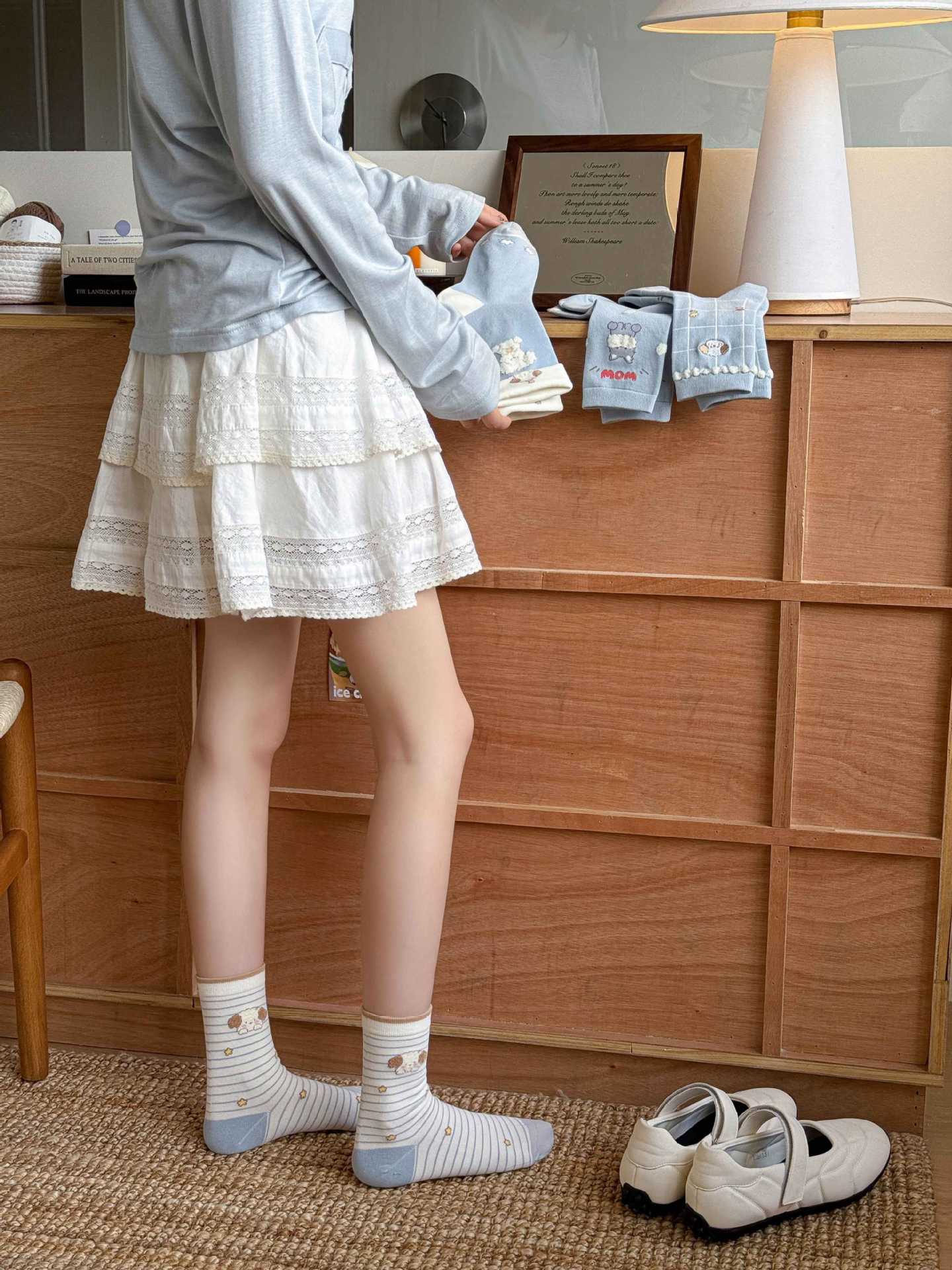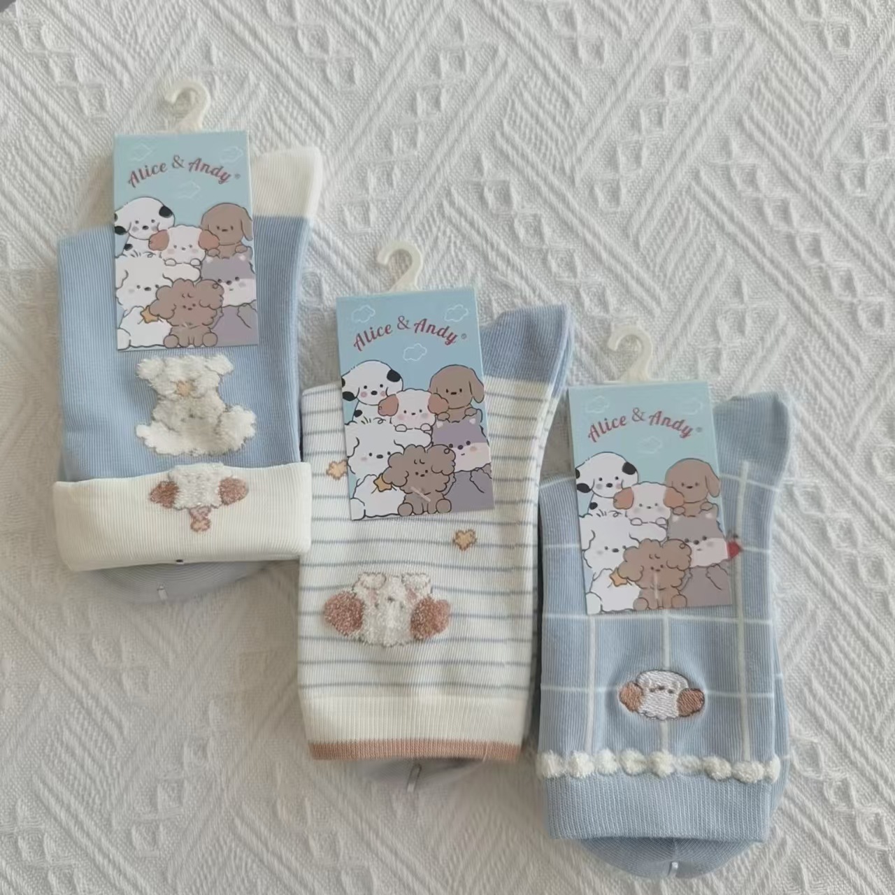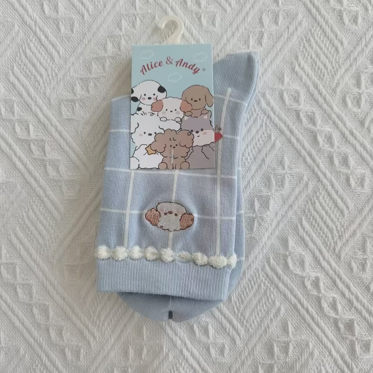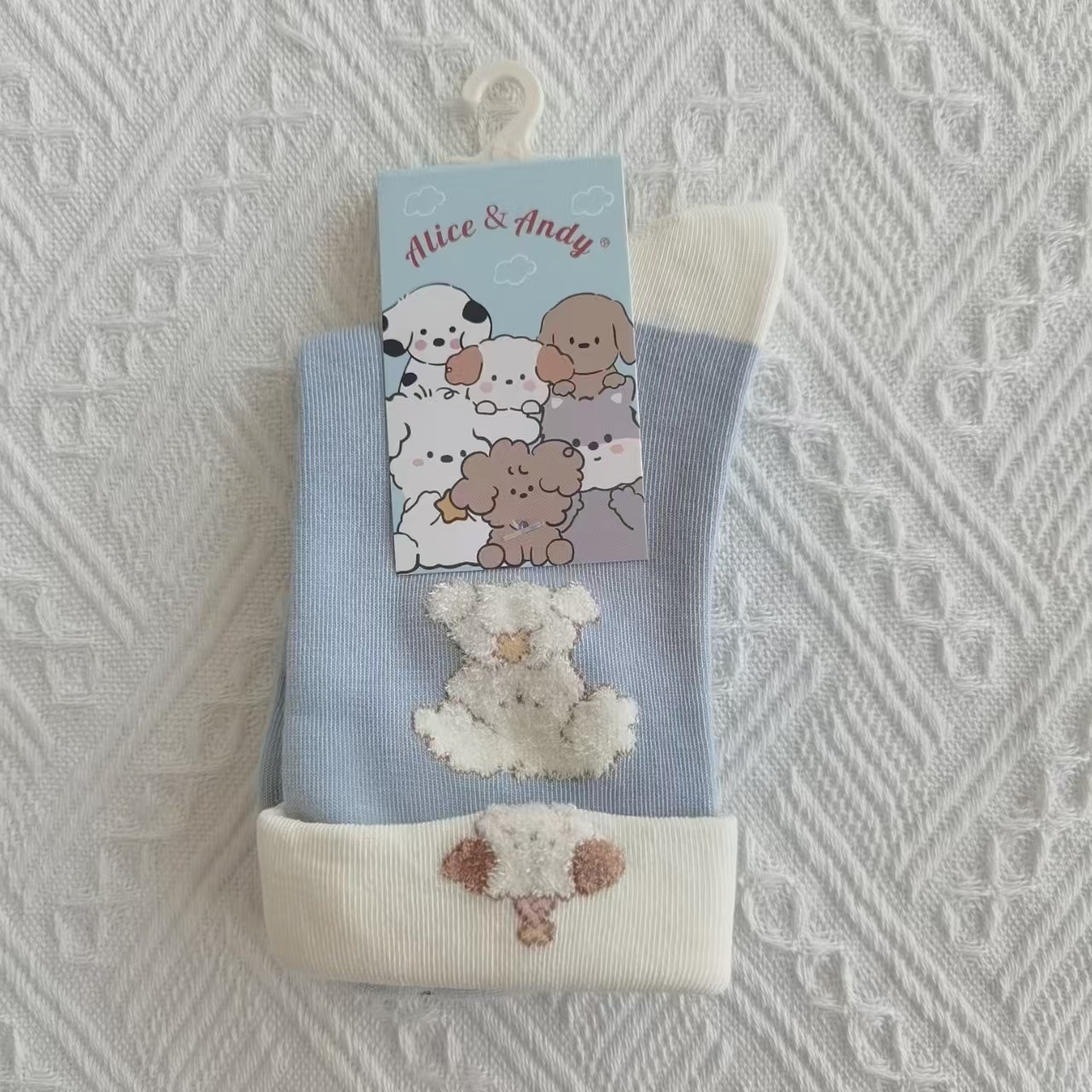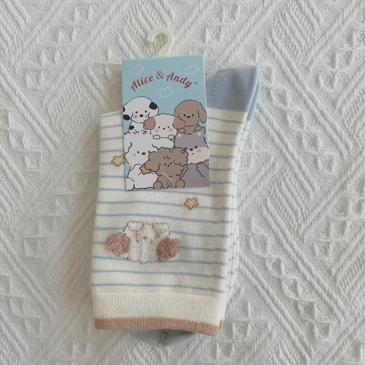 앨리스 앤 앤디 봄과 가을 새로운 만화 귀여운 모리 친구 강아지 중간 튜브 양말 블루 트렌디 여성 양말
