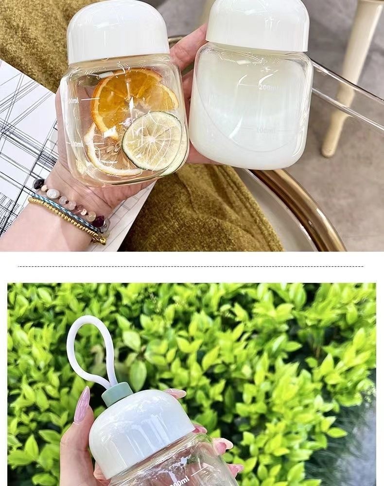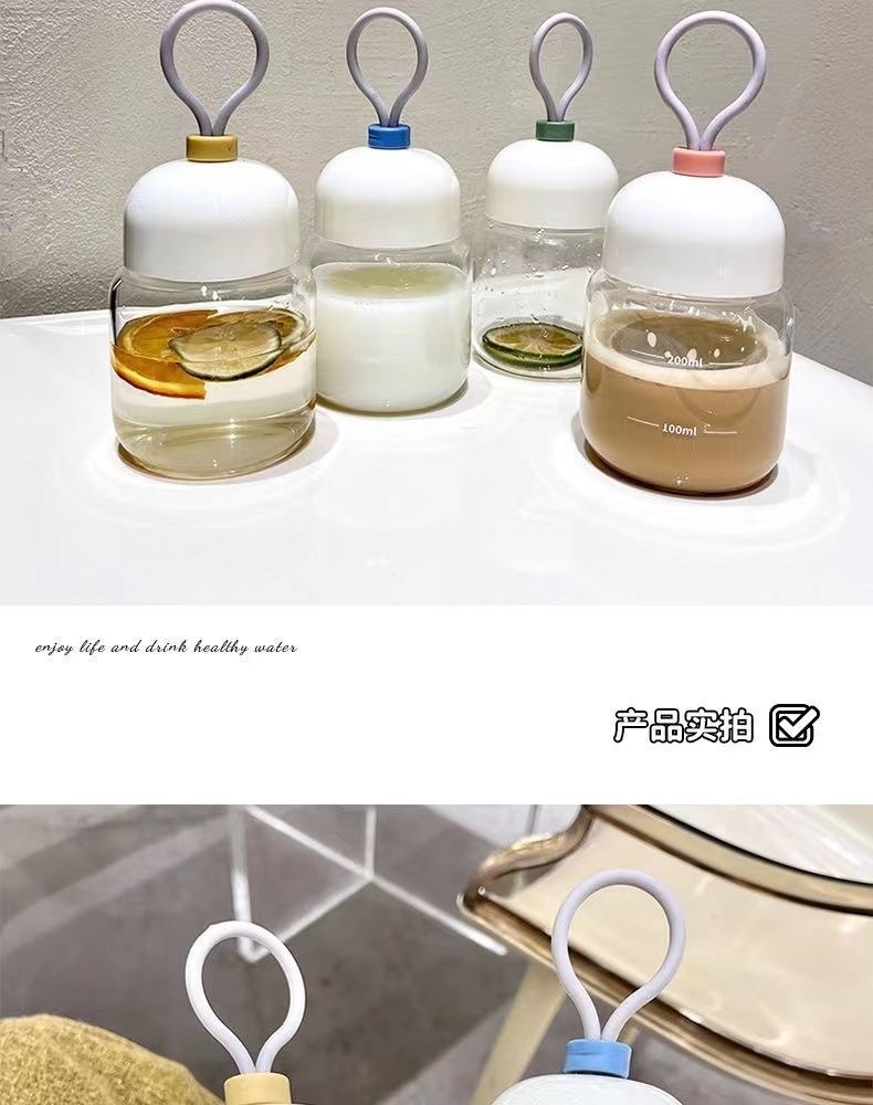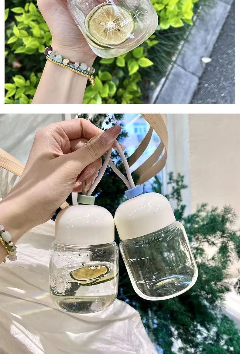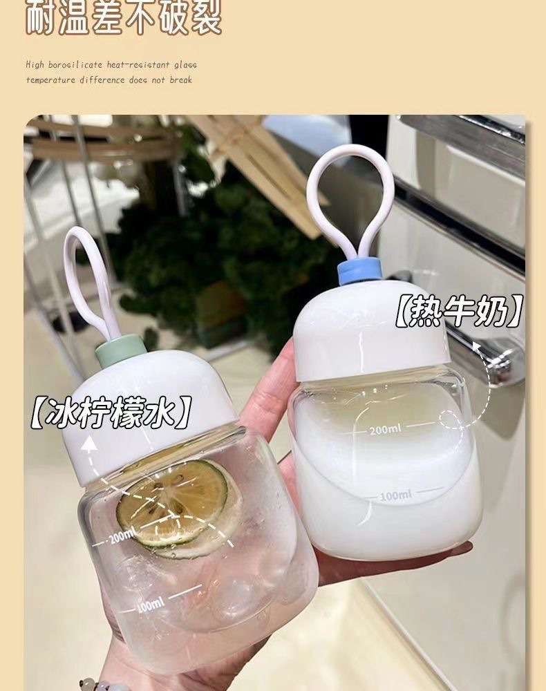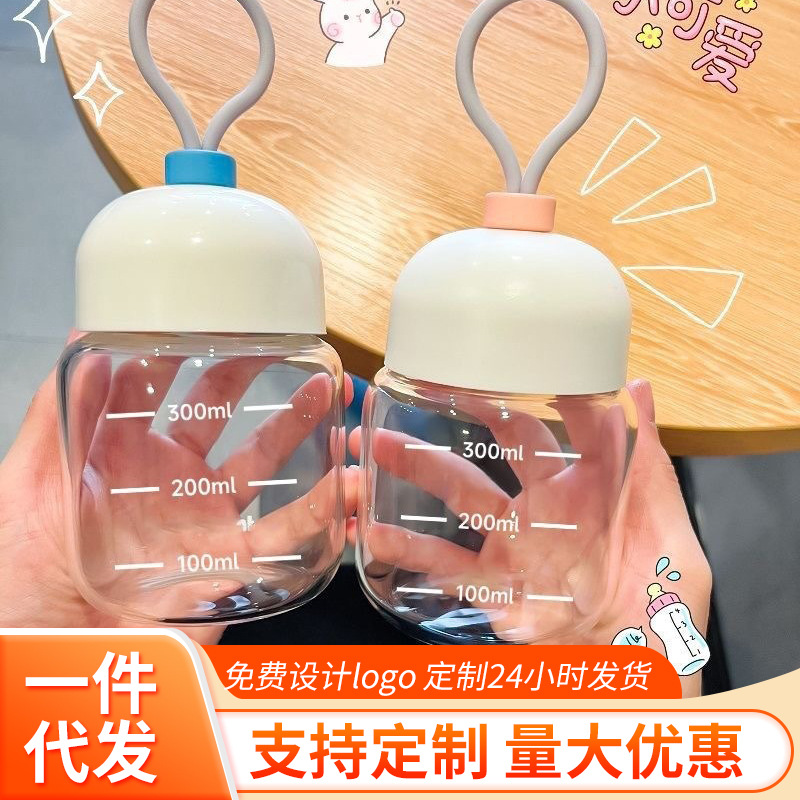 스케일이 있는 끈이 달린 뚱뚱한 컵, 유리 물컵, 휴대용 미니 커피 두유 차가운 음료 선물 컵