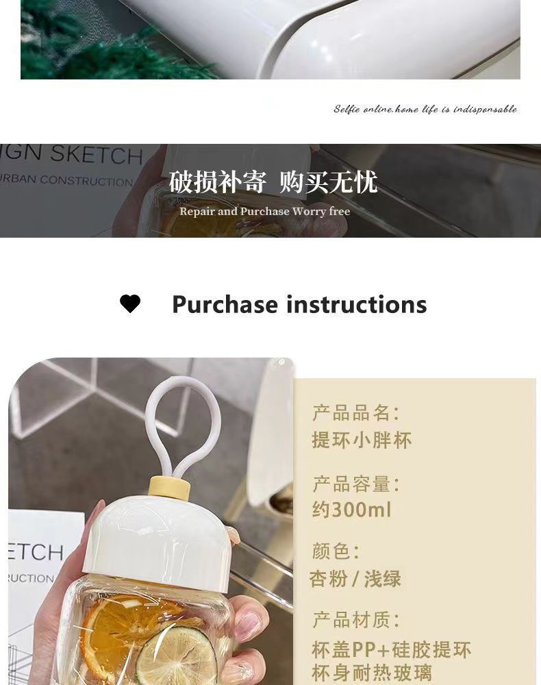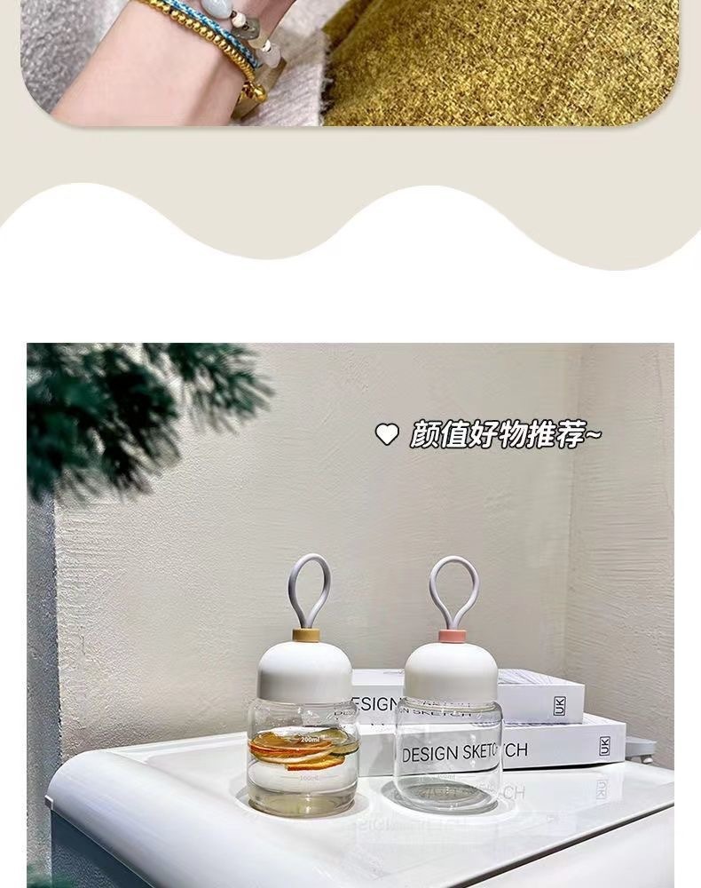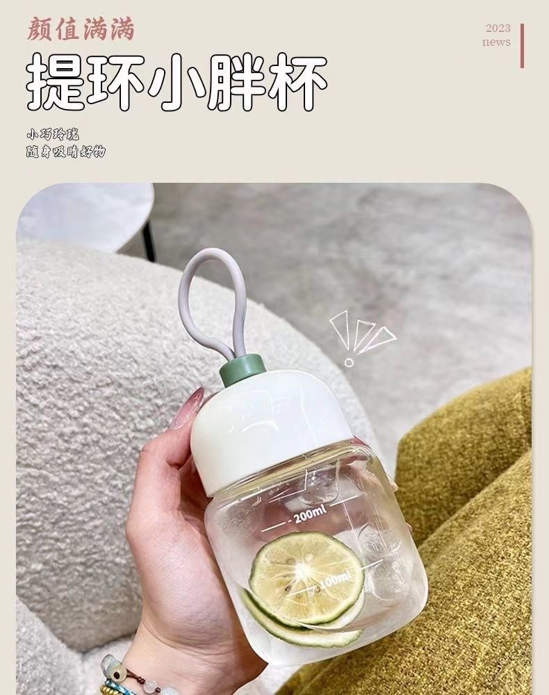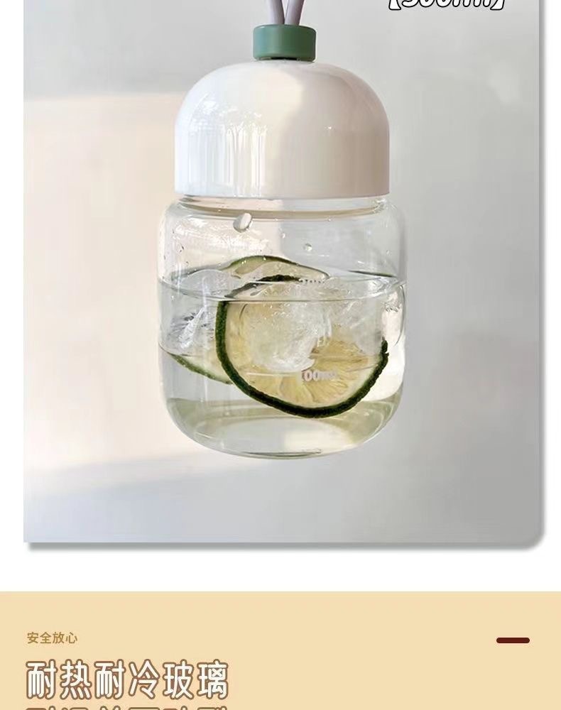 스케일이 있는 끈이 달린 뚱뚱한 컵, 유리 물컵, 휴대용 미니 커피 두유 차가운 음료 선물 컵