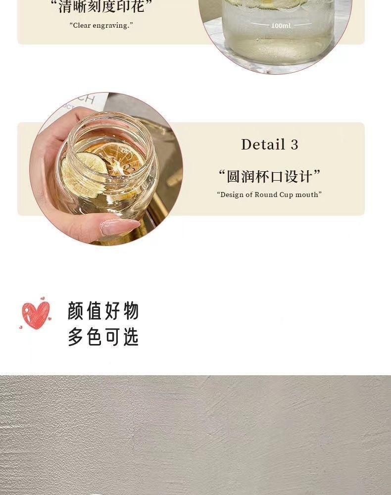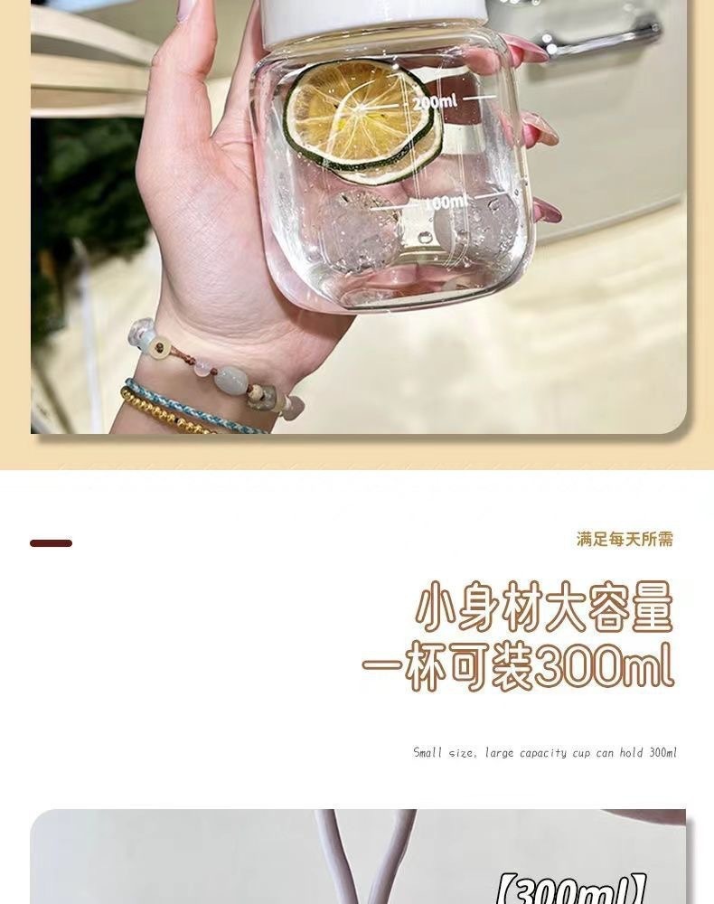 스케일이 있는 끈이 달린 뚱뚱한 컵, 유리 물컵, 휴대용 미니 커피 두유 차가운 음료 선물 컵스토어 가기