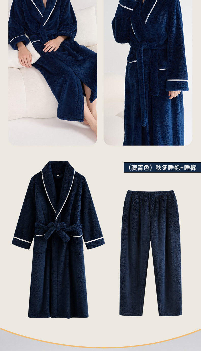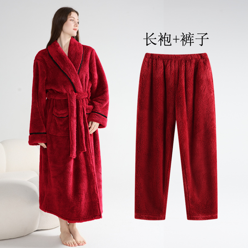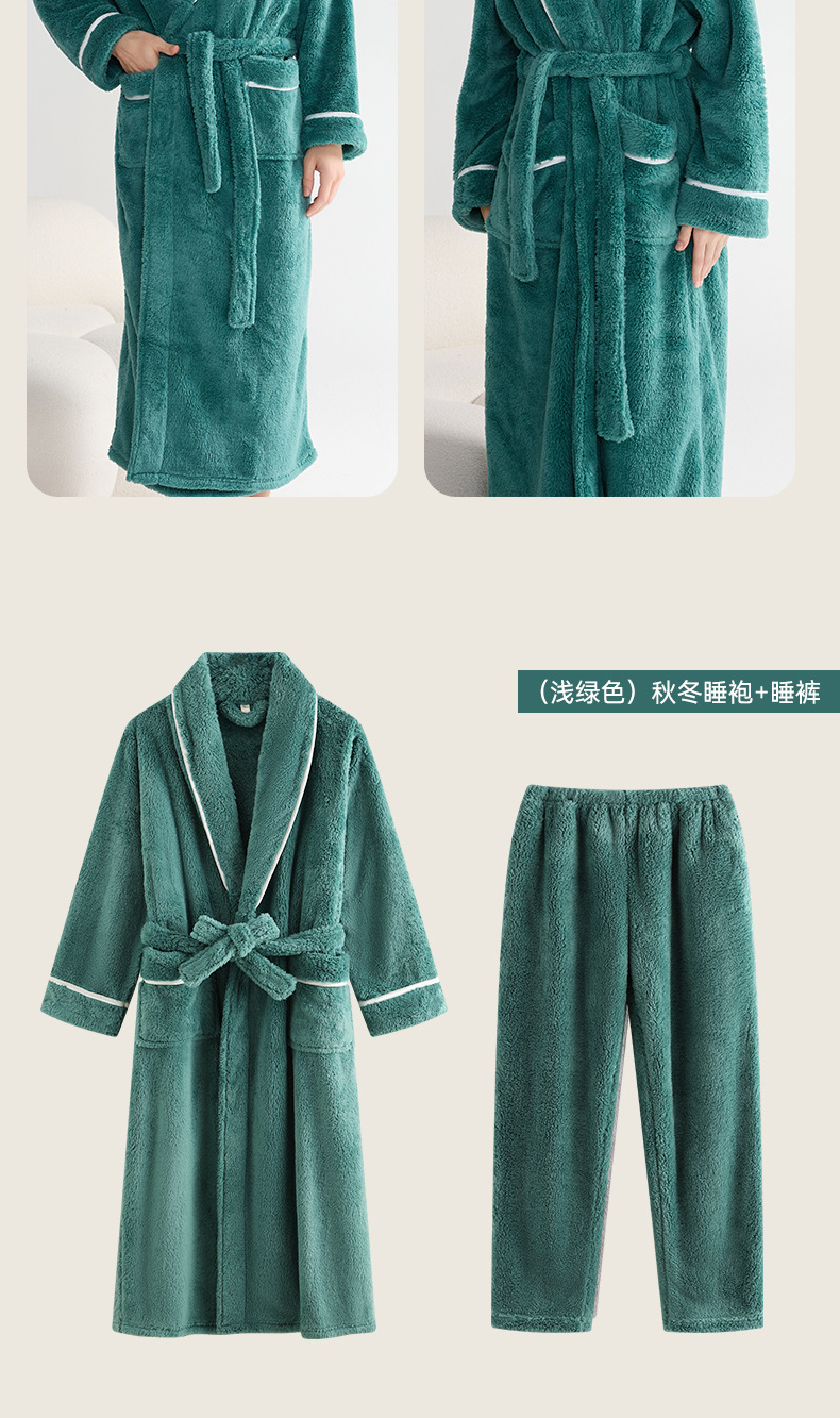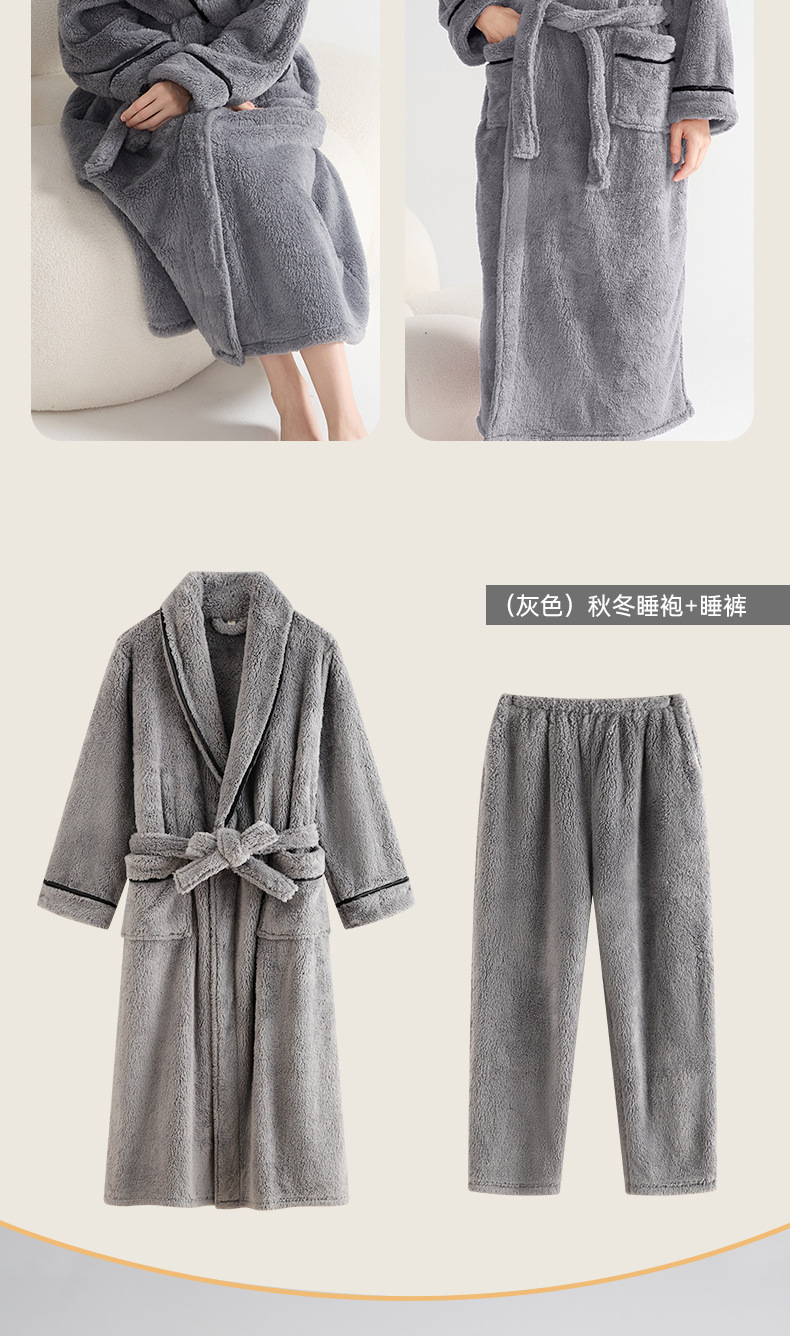 가을 겨울 여성용 따뜻한 벨벳 잠옷, 남성용 플러시 목욕 가운, 커플 잠옷 세트, 긴 목욕 가운, 두꺼운 바지 가운, 겨울스토어 가기