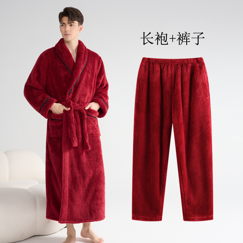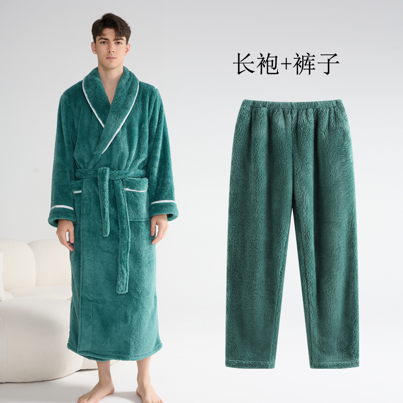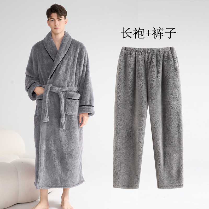 가을 겨울 여성용 따뜻한 벨벳 잠옷, 남성용 플러시 목욕 가운, 커플 잠옷 세트, 긴 목욕 가운, 두꺼운 바지 가운, 겨울