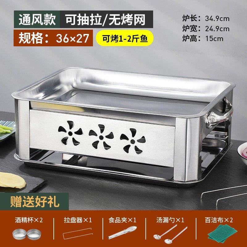 알코올 알코올 스토브 트레이 직사각형 두꺼운 그릴 탄소 상업용 스테인레스 스틸 생선 구이 스토브 가정용 전기 영동 없음스토어 가기