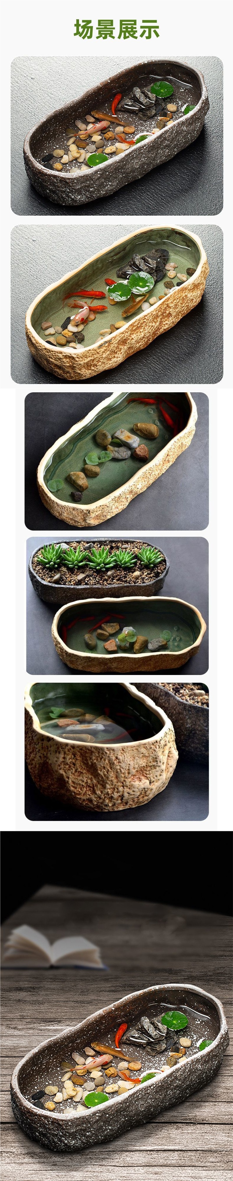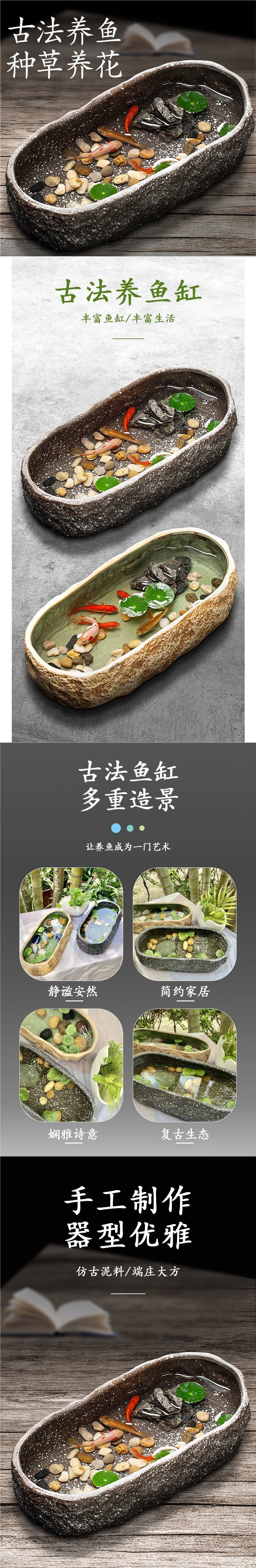 고대 방식의 수조, 복고풍 스타일의 조경, 데스크탑 수조, 야외 발코니 수조, 세라믹 수경 녹색 식물스토어 가기